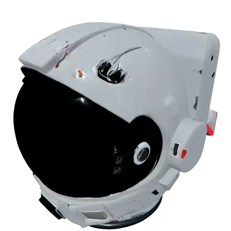 This highly detailed 3D model represents a futuristic astronaut helmet, meticulously designed for various digital applications. It features a robust, sleek white exterior with a dark, reflective visor, capturing a modern and advanced aesthetic suitable for deep space exploration. Subtle surface imperfections, scratches, and technical markings add a touch of realism and a sense of history to the gear, making it look authentically used. The model is perfectly suited for integration into immersive game environments, cinematic sequences, virtual reality (VR) and augmented reality (AR) experiences, or high-quality static renders for digital art and architectural visualization projects. Its clean topology and optimized mesh ensure smooth performance in real-time applications while maintaining excellent detail for close-up shots. It is fully UV unwrapped and includes high-resolution PBR textures to achieve its realistic look, including diffuse, roughness, metallic, normal, and ambient occlusion maps. This versatile asset is provided in multiple industry-standard file formats such as GLB, OBJ, STL, ABC, DAE, FBX, USD, and PLY, ensuring broad compatibility across different 3D software and engines. Whether you need a hero asset for a sci-fi game, a compelling visual for an animation, or a detailed prop for a futuristic scene, this astronaut helmet delivers exceptional quality and flexibility.