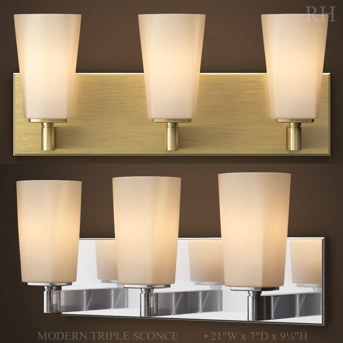 MODERN SINGLE SCONCEArchives included: textures, materials (vray),3DS, FBX, OBJ, 2011 max, 2014 max sceneModel was created in 3ds Max 2014.Shader for V-Ray 3.30.05Materials sconce: Lacquered Burnished Brass, Oil-Rubbed Bronze, Satin Nickel, Polished Chrome. Dimensions sconce:MODERN SINGLE SCONCE•4,5W x 7D x 9,25H•11,4cmW x 17,8cmD x 23,5cmHMODERN DOUBLE SCONCE•14,5W x 7D x 9,25H•36,8cmW x 17,8cmD x 23,5cmHMODERN TRIPLE SCONCE•21W x 7D x 9,25"H•53,3cmW x 17,8cmD x 23,5cmH