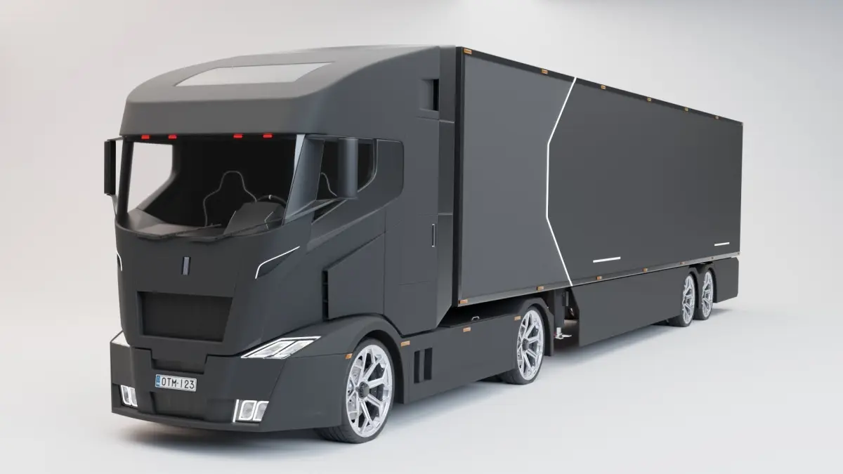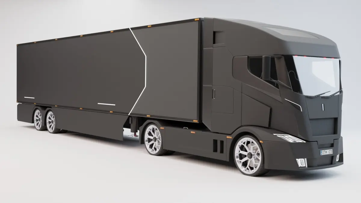 This is a high poly 3d model of an electric semi truck made in style of a modern supercar. Modelled, rigged and textured in blender 3.5.1