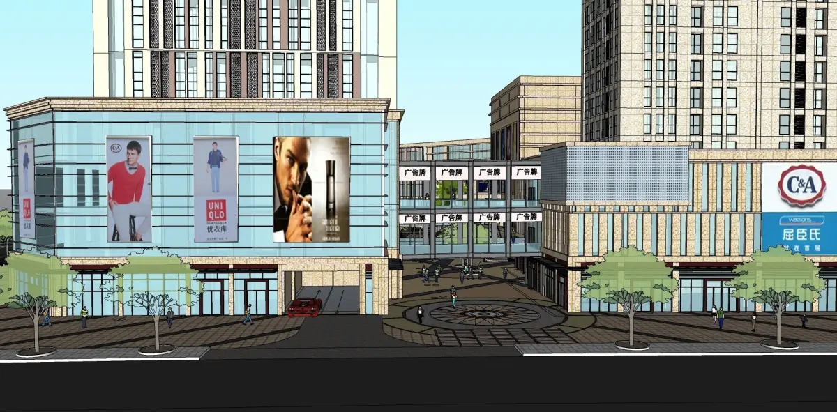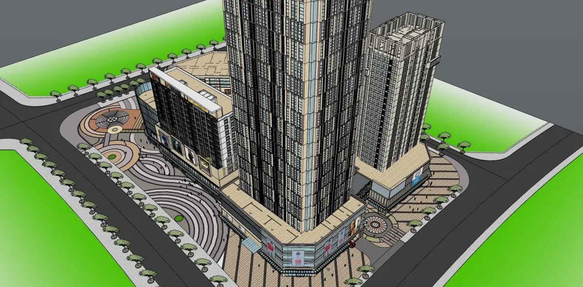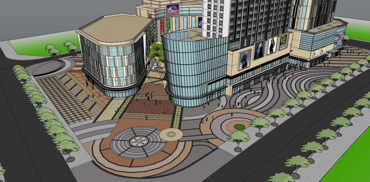 modern shopping mall with skyscrapper 3D model
