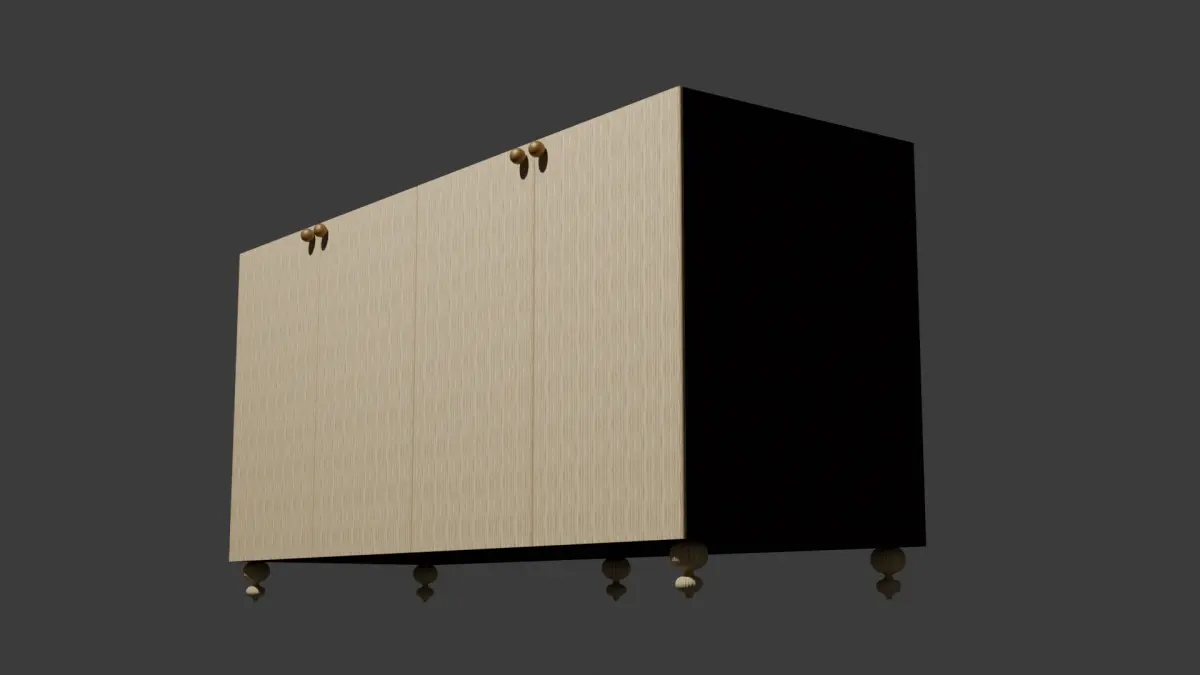 Low-poly 3D model of a modern sideboard, used for setting the interior or architectural design scenes. Designed with high-resolution textures and simple geometry. You can use the model for game development and more.