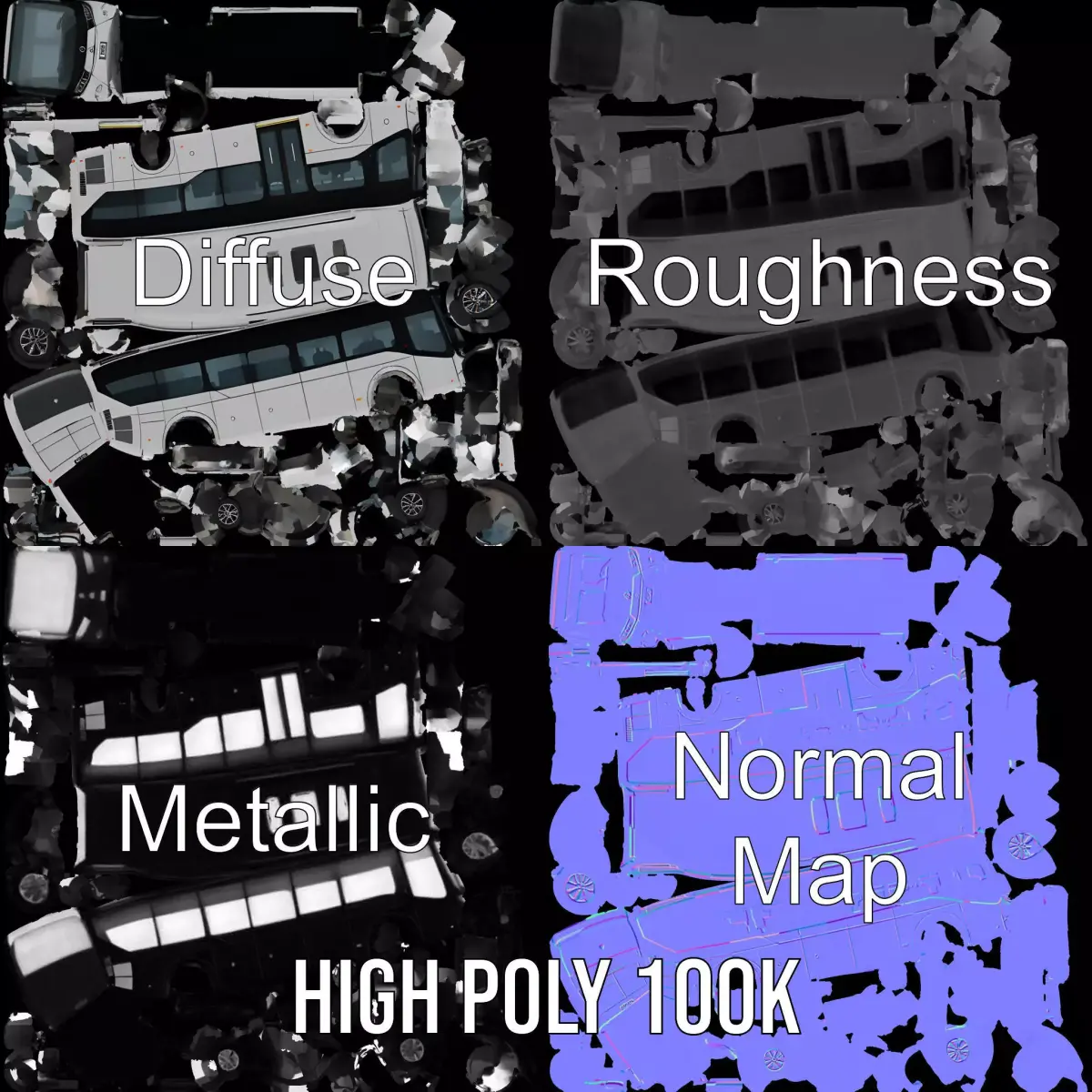 The Modern Silver Bus model pack offers a detailed and versatile 3D model of a contemporary city bus. Each model comes with 3 levels of detail: low-poly for mobile applications (1000 triangles), middle-poly for environment settings (10,000 triangles), and high-poly for production rendering (100,000 triangles). This flexibility allows for seamless use in game engines like Unity and Unreal, as well as in 3D applications such as 3ds Max, Maya, and Blender. The model is perfect for transportation simulations, architectural visualizations, and interactive presentations.