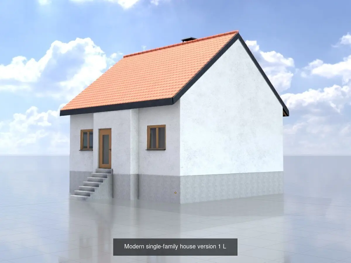 - Hier sehen Sie alle Versionen des Einfamilienhauses mit Fundament und Treppe im Eingangsbereich.