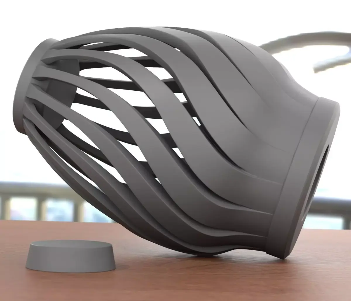 This modern spiral lamp is designed to create elegant ambient lighting and contemporary interior décor.Its twisted, flowing slats form an organic and dynamic pattern that produces a beautiful diffusion of light and shadows when illuminated.This model is divided into two pieces.