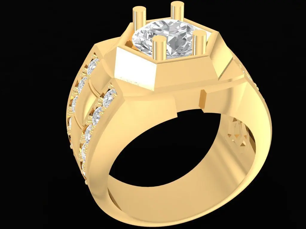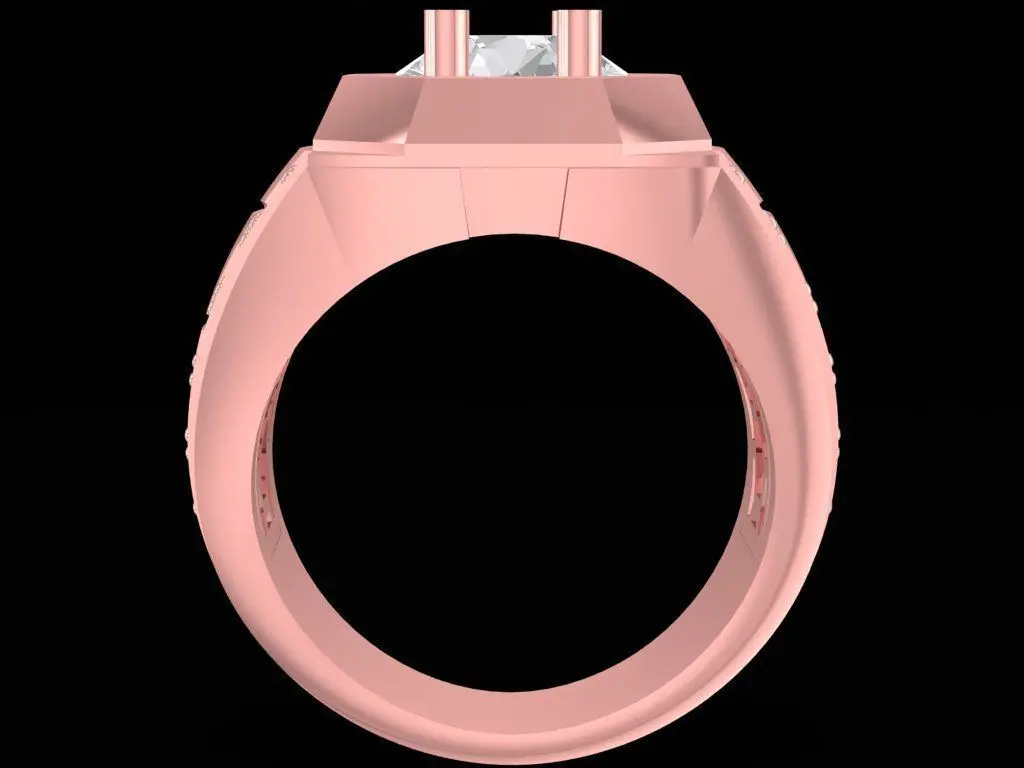 This 3D model showcases a modern square-shaped men’s ring featuring a bold central diamond surrounded by multiple side stones. The solid design combines luxury and masculinity, making it perfect for gentlemen who appreciate refined statement jewelry.