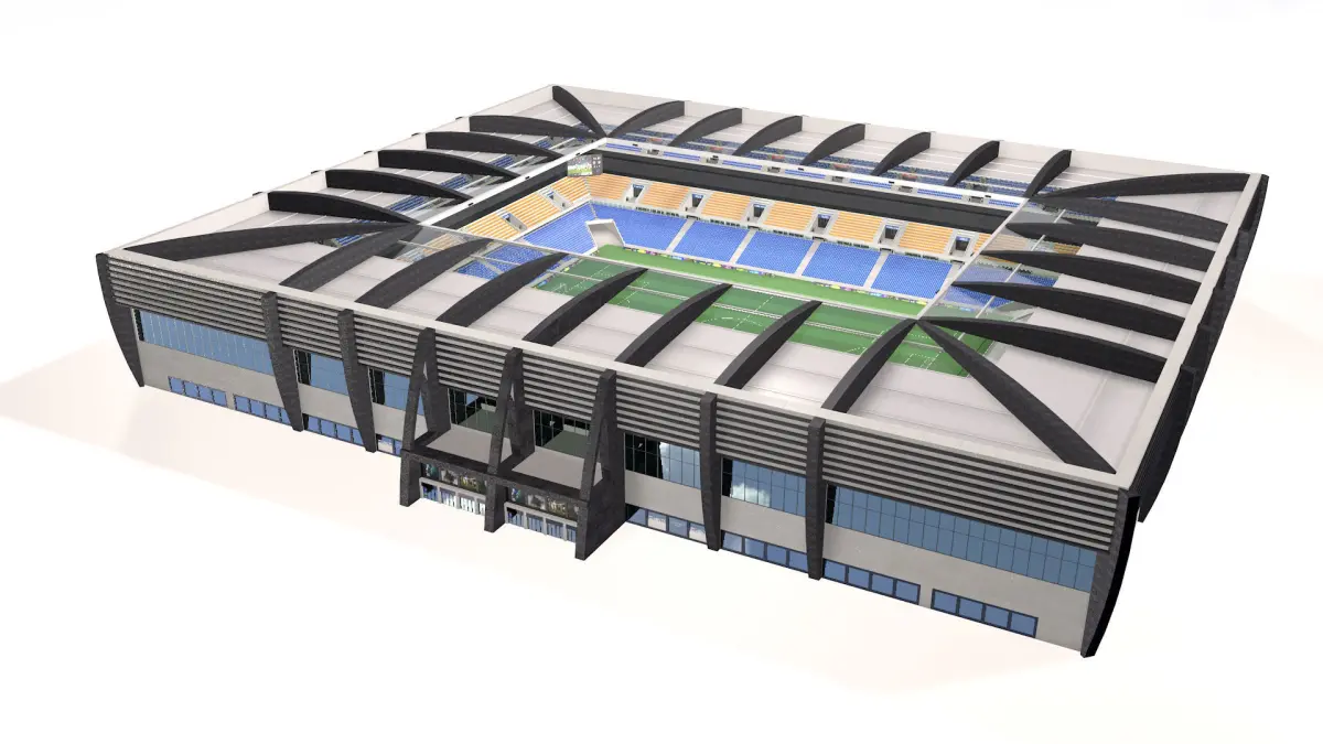 Modern stadium for soccer, us football and rugby– modelled and rendered in C4d R26