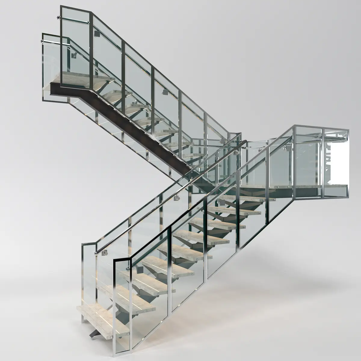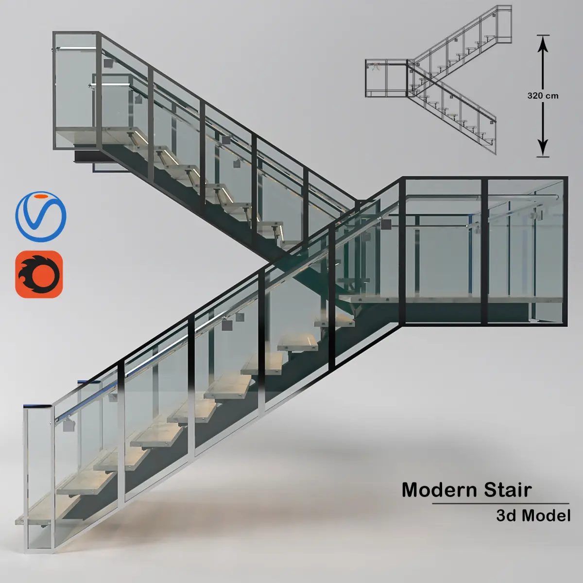 modern stair 3d model glass and metal modern stair with materials and structure file has been OBJ and FBX and 3ds file i hope like it
