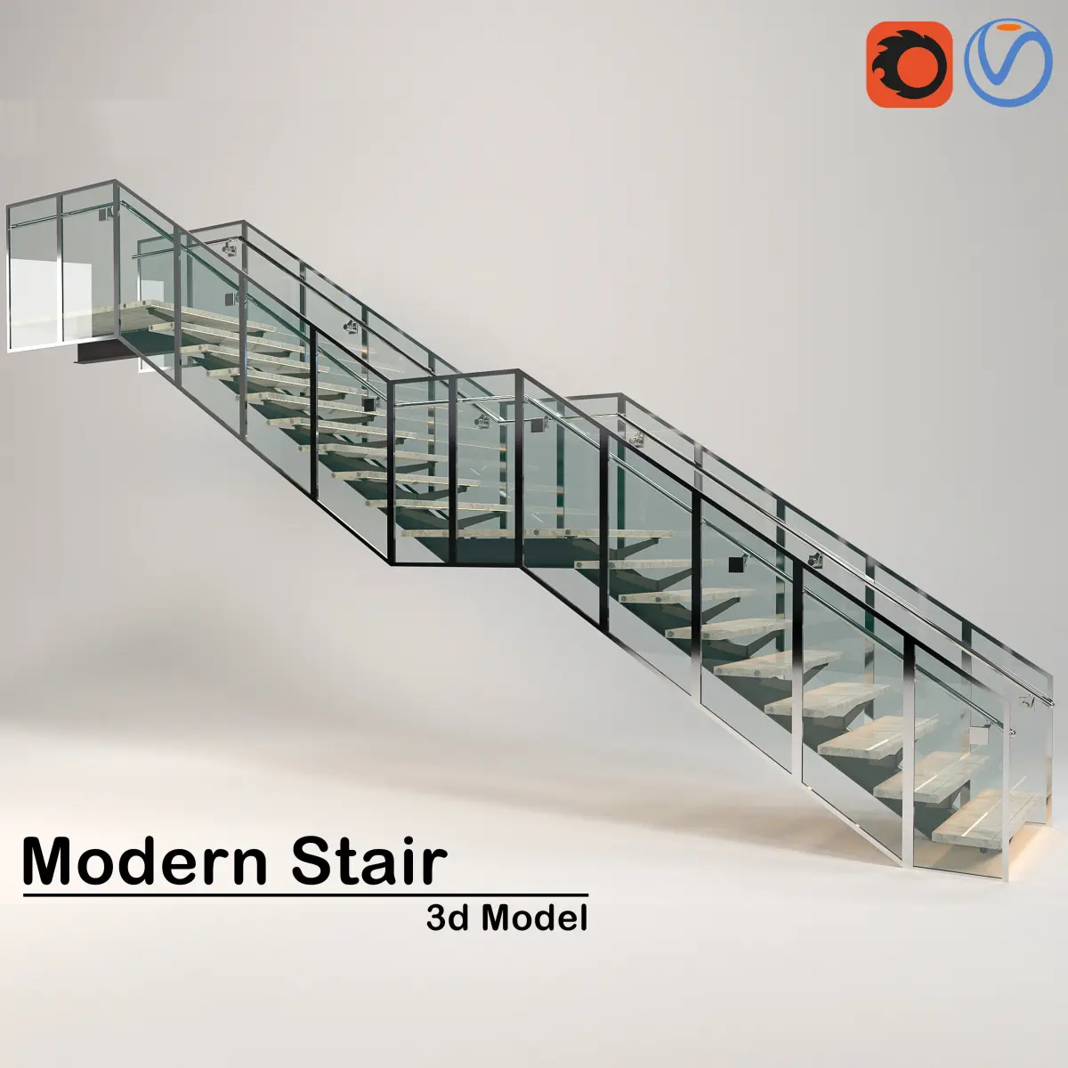 modern stair 3d model glass and metal modern stair with materials and structure file has been OBJ and FBX and 3ds file i hope like it