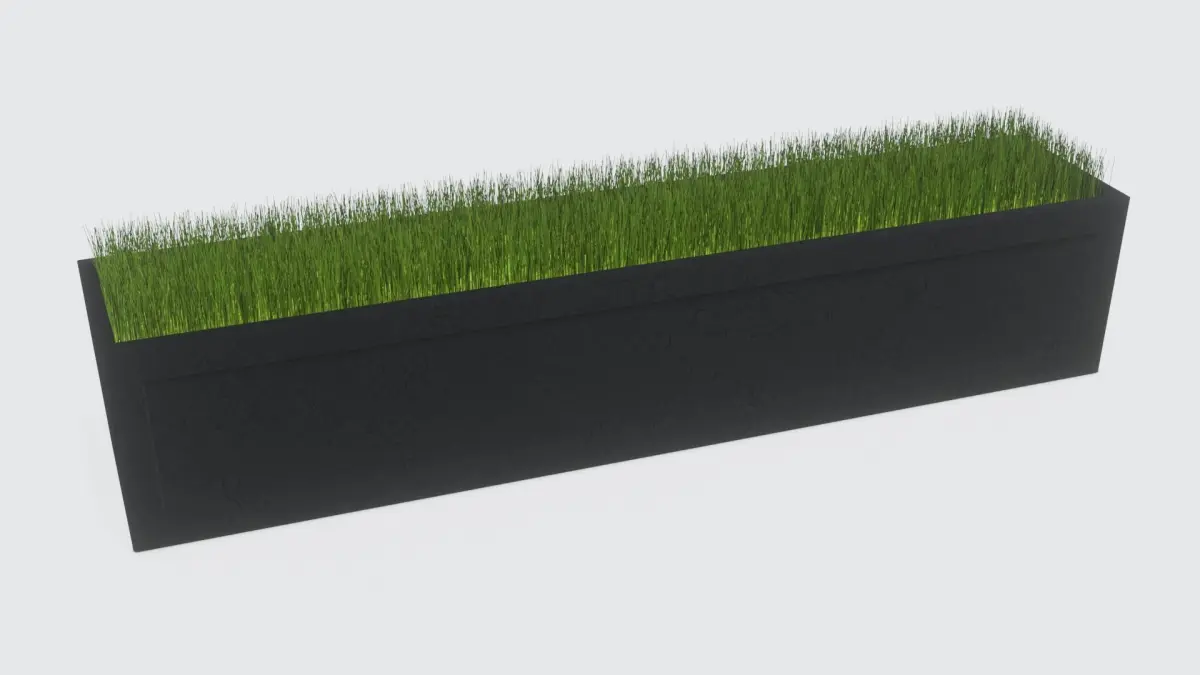 Modern steel planter, for use in gardens or exterior decorations for scenes.