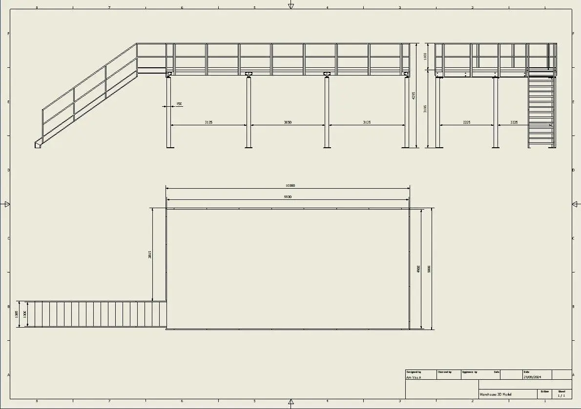 - Columns: Square steel columns (150x150mm) ensure robust support, accurately modeled for industrial-grade loft designs.