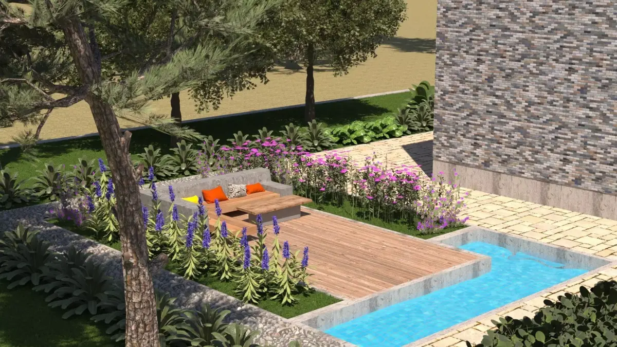 Modern Stone & Wood Luxury Villa with Pool ,full 3d scene