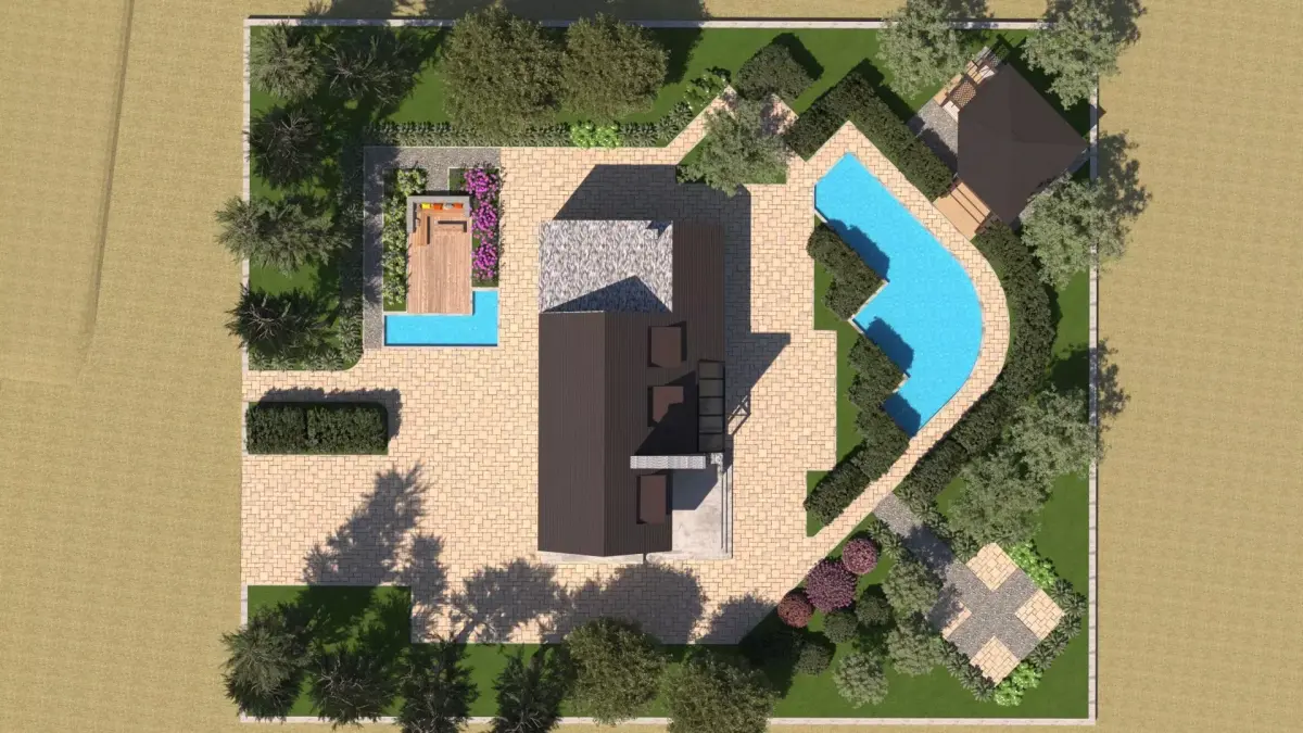 Additional Structures: A charming gazebo/pergola structure is situated near the pool.