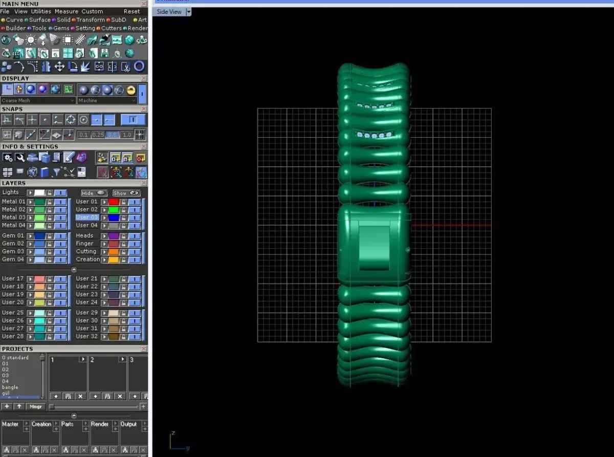 This bracelet with a modern design and modular structure offers a combination of luxurious beauty and precise manufacturing engineering. The flexible form of the links ensures an ideal fit on the hand, and the principled design of the stone placement creates a neat and professional look in the final product.The model is fully engineered to run smoothly in the casting, finishing and mass production process with minimal material waste. This design is a safe choice for manufacturers looking for a modern, reliable model that is ready to enter the production line.