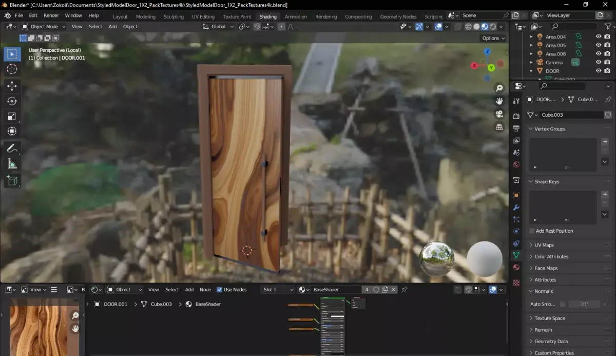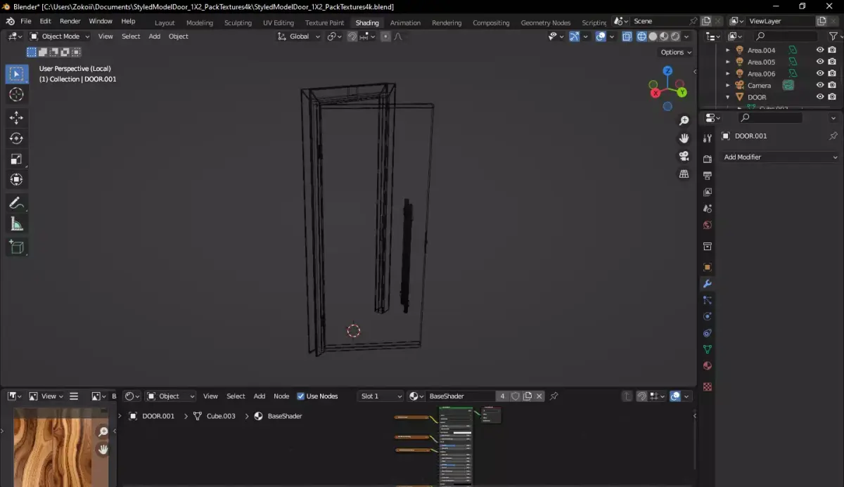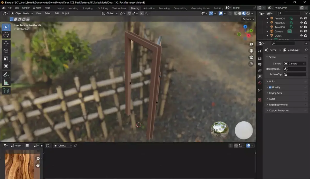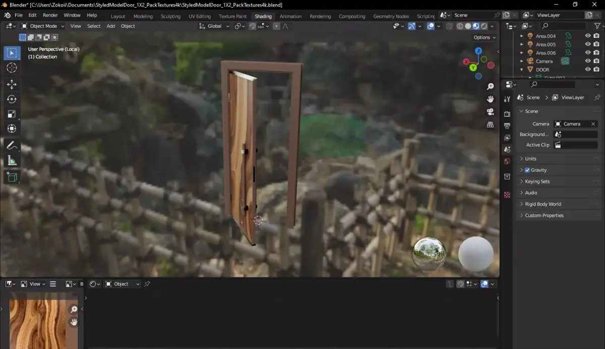 Professional High-Quality Door Model with 4K PBR TexturesBring realism to your architectural visualization or game project with this highly detailed, optimized wooden door model. Created in Blender 3.5.0, this asset features a unique organic wood grain pattern and a sleek modern design.