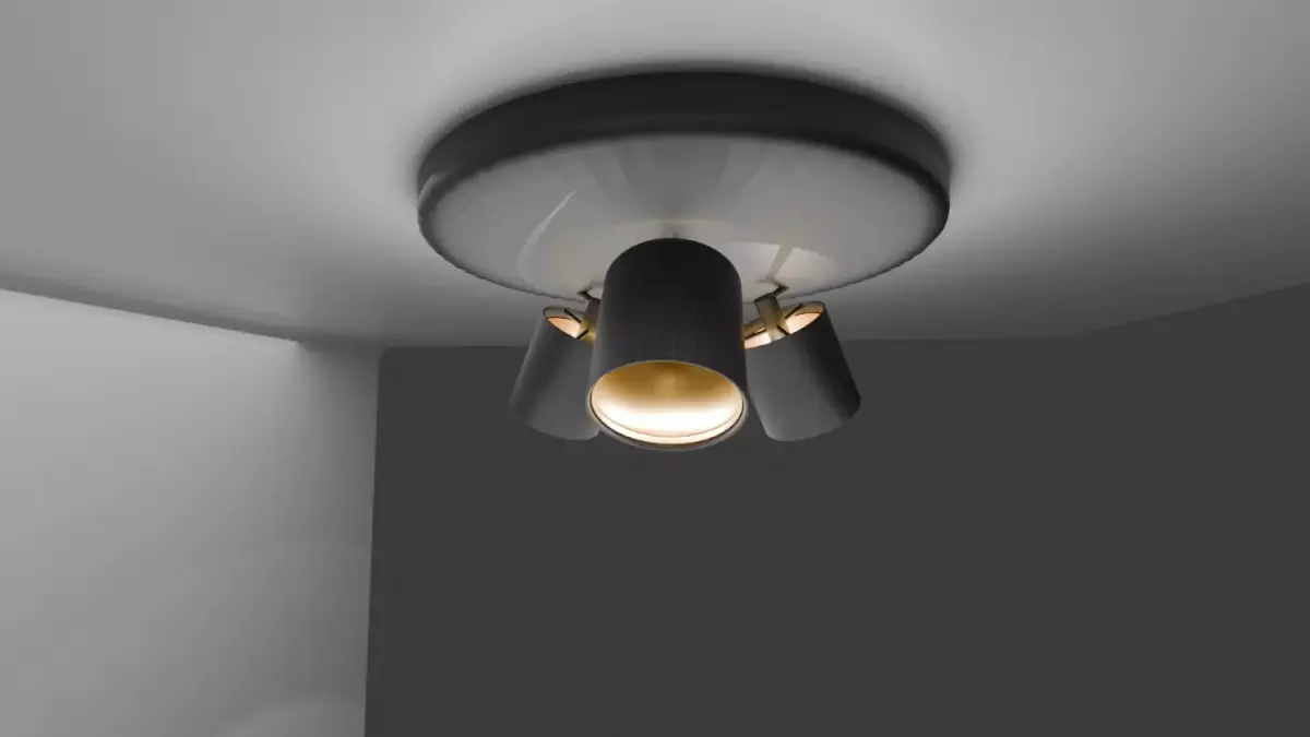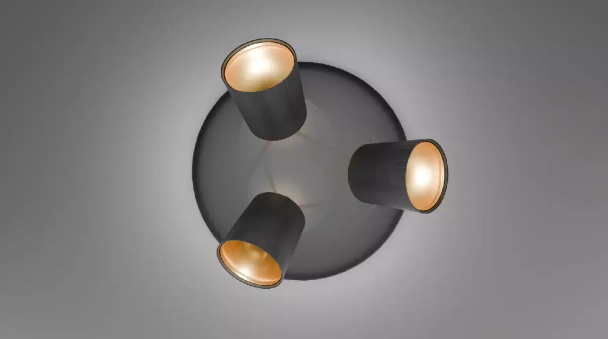 This is a detailed 3D model of a modern ceiling lamp with three cylindrical spotlights. The lamps feature a black fabric texture with a soft inner glow, creating a stylish and realistic design element for any scene. The model is clean, well-structured, and easy to integrate into both architectural visualizations and interior renders. Its simple yet elegant shape makes it versatile for living rooms, bedrooms, offices, or modern commercial spaces. With optimized geometry and realistic materials, this ceiling light adds atmosphere and depth to any project while keeping performance smooth and efficient.