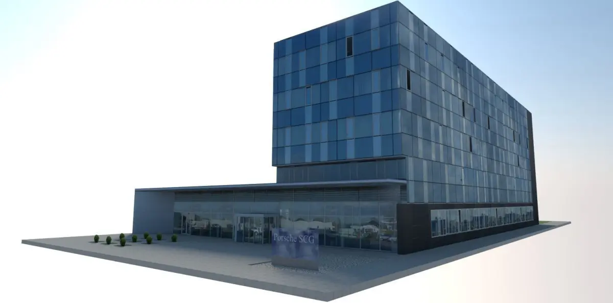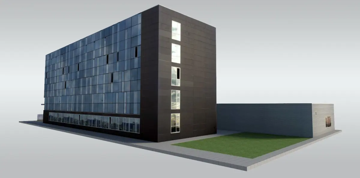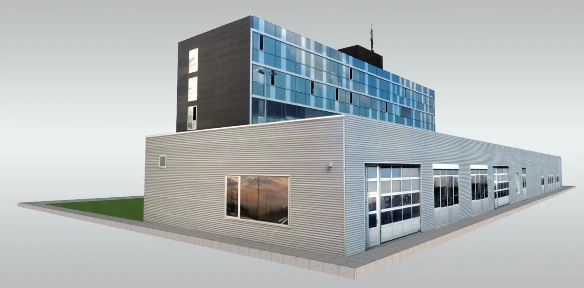 Simple, elegant and modern suburban office. Great to place next to the highway or city entrance. Originally it's a car dealership but it can be used for any commercial purpose. Low-poly geometry.