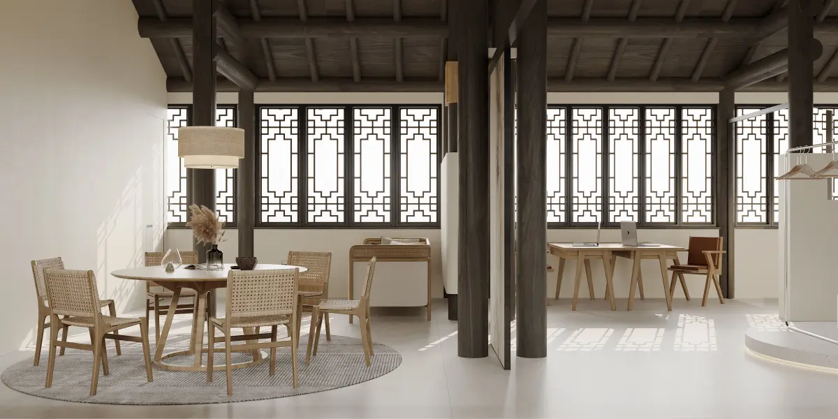 Introducing a meticulously crafted 3D model and CAD drawings of a modern suit store, blending contemporary design elements with traditional architecture. This model is perfect for those looking to visualize a sophisticated retail space that exudes elegance and style. Every detail, from the intricate patterns on the windows to the sleek interior layout, has been carefully designed to offer a realistic representation of a high-end suit store.