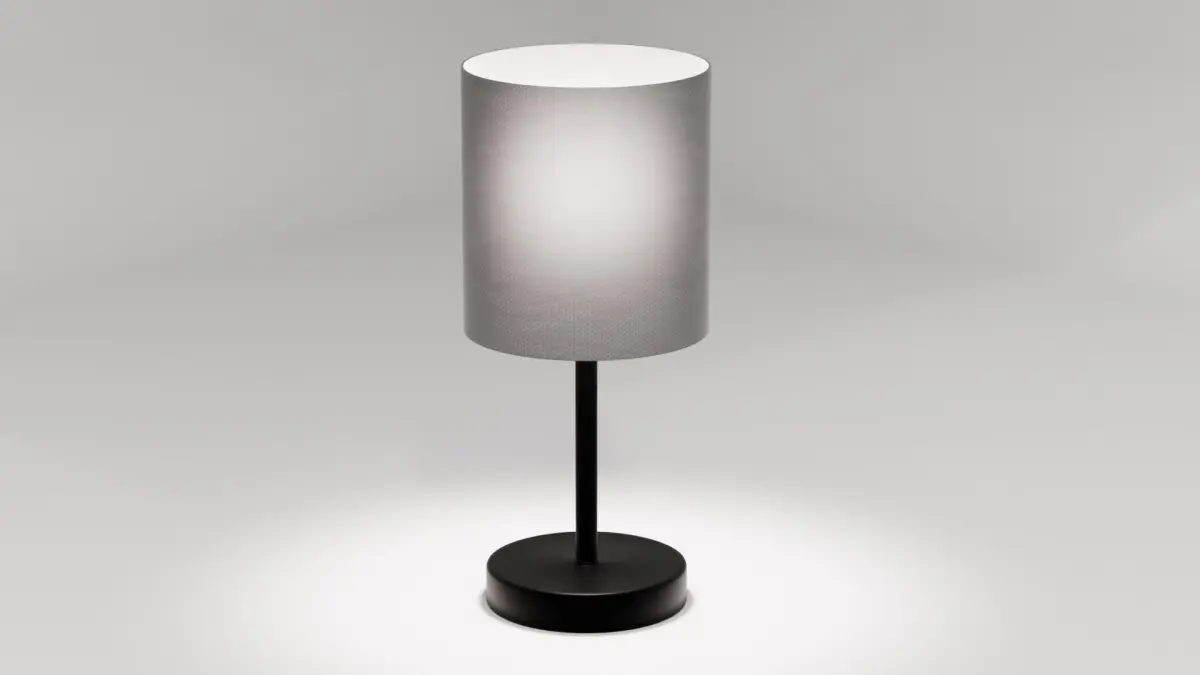Modern table lamp used to light interior scenes, meant to be placed on table.