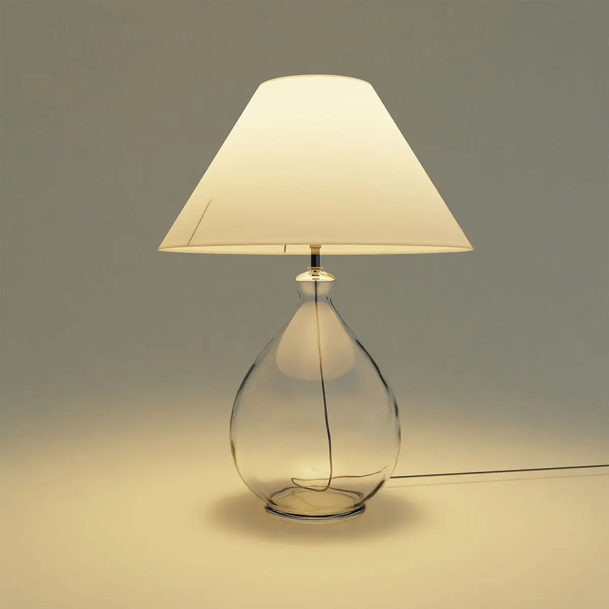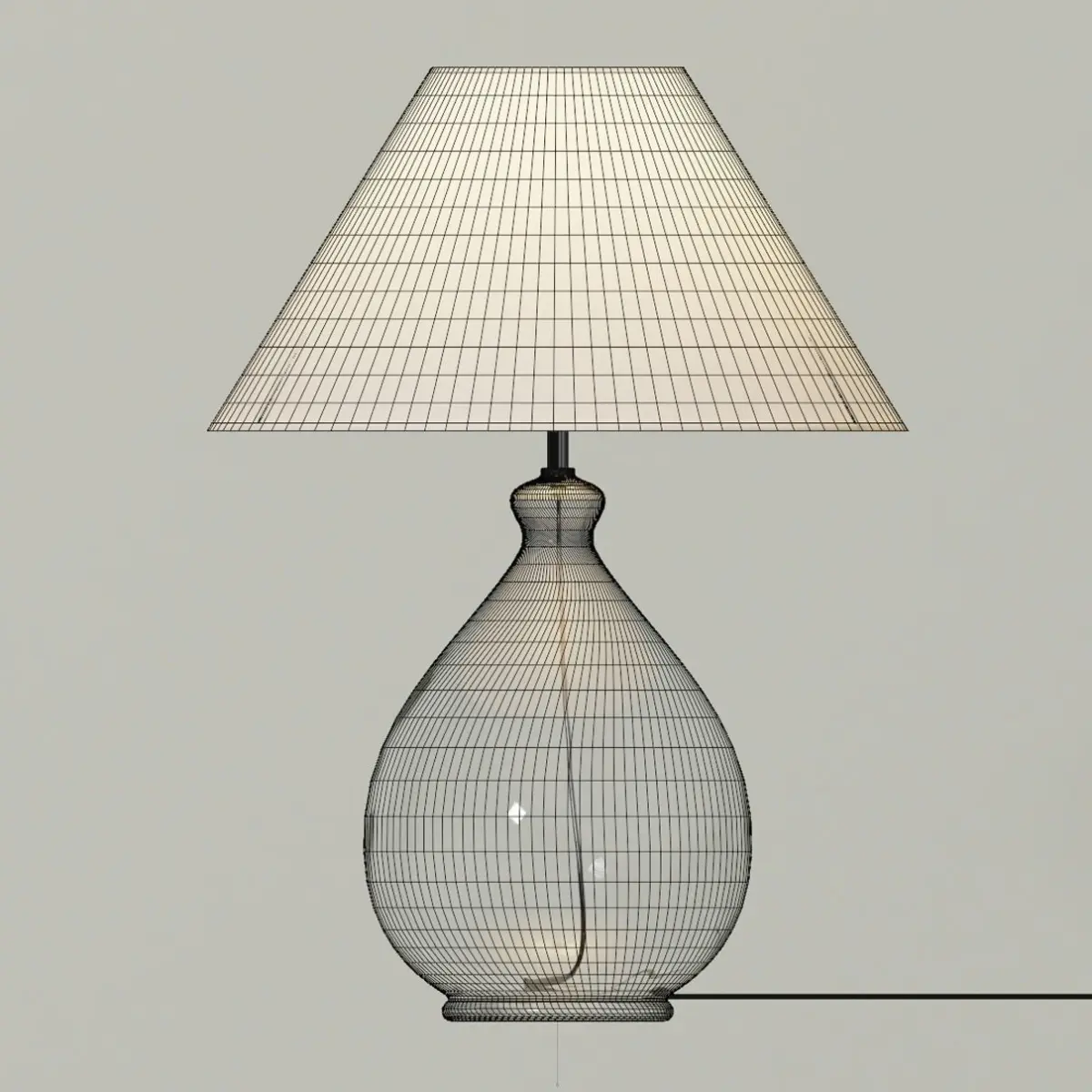 3D model of a Large Round modern Lamp with shade and Jar base.Modern table lamp for interior renders. High-poly model includes led lamp bulb.