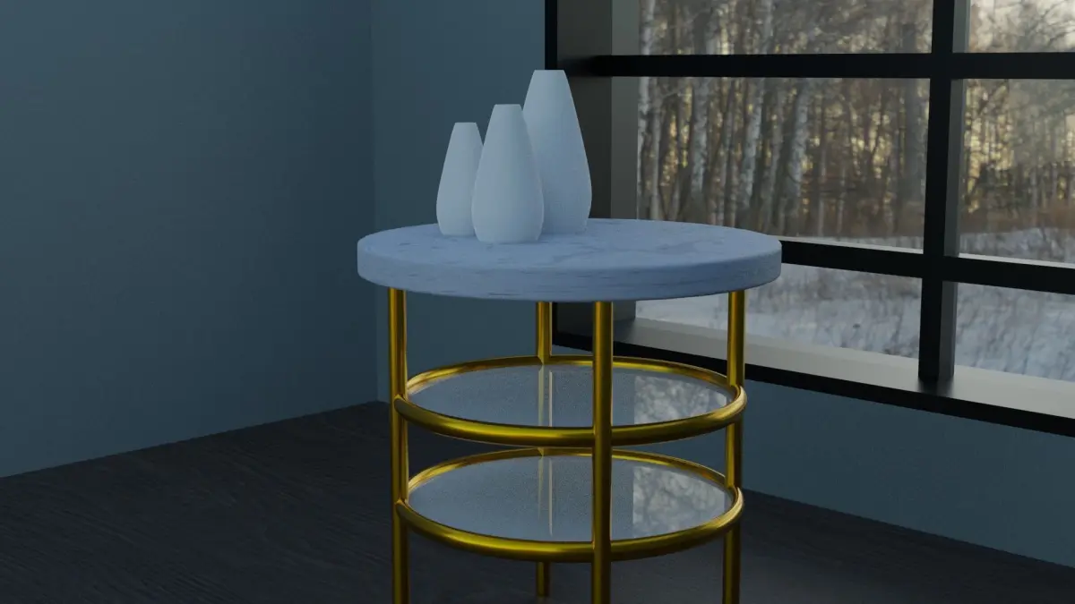 A basic room scene with a table (good as a coffe table, bedside table, and as small household table) and vases. I am releasing this table with the intention of it being an asset for 3d scenes (though it may be used for other purposes).(Not all cameras used for images will be included in scene) (note polygon/vertice count may be off I intend to fix this soon)