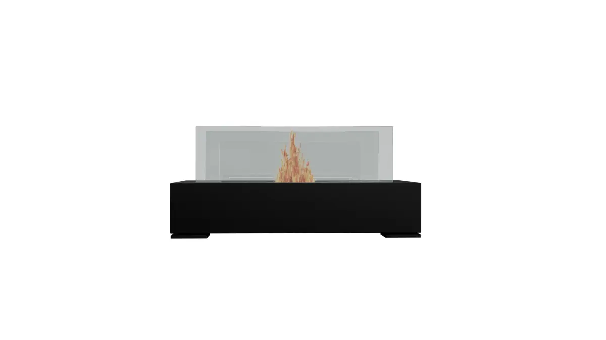 Elegant tabletop biofireplace with realistic flames, black steel body and tempered glass sides. Ideal for modern interior visualization or product showcase.This high-quality 3D model represents a modern tabletop bioethanol fireplace, also known as an eco fireplace. Carefully modeled from real references, it features: