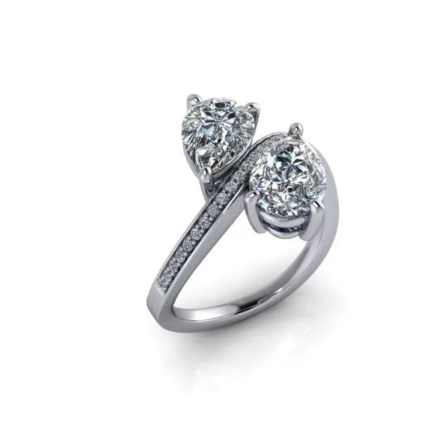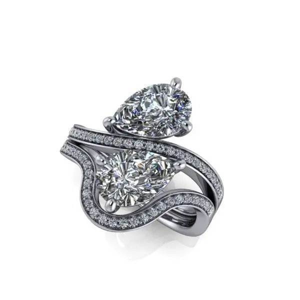 Beautiful Modern TearDrop pear Shape 2 stone ring BirthStone, This is designed in USA size 7, Its STL file and ready for 3D printing. This is perfectly designed to set Diamonds or birthstones, depends on the customers demand. This is a 3D print jewerly model.
