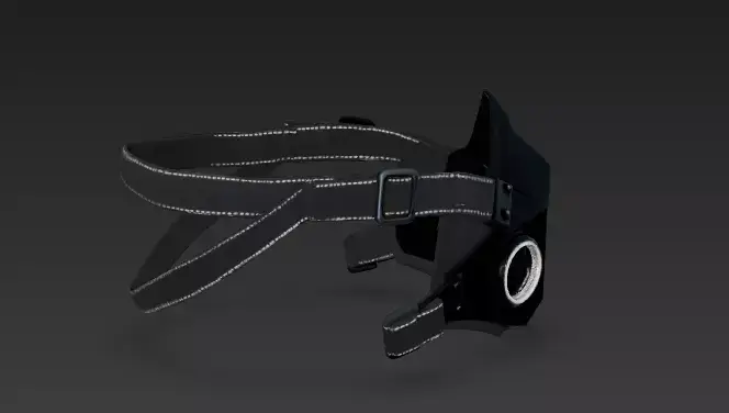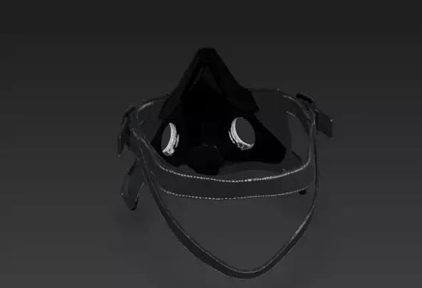 Industrial Hardware The straps connect to the mask via reinforced tabs held in place by black rivets. Additionally, durable plastic buckles and sliders are modeled on the sides, suggesting that the mask is fully adjustable and functional.