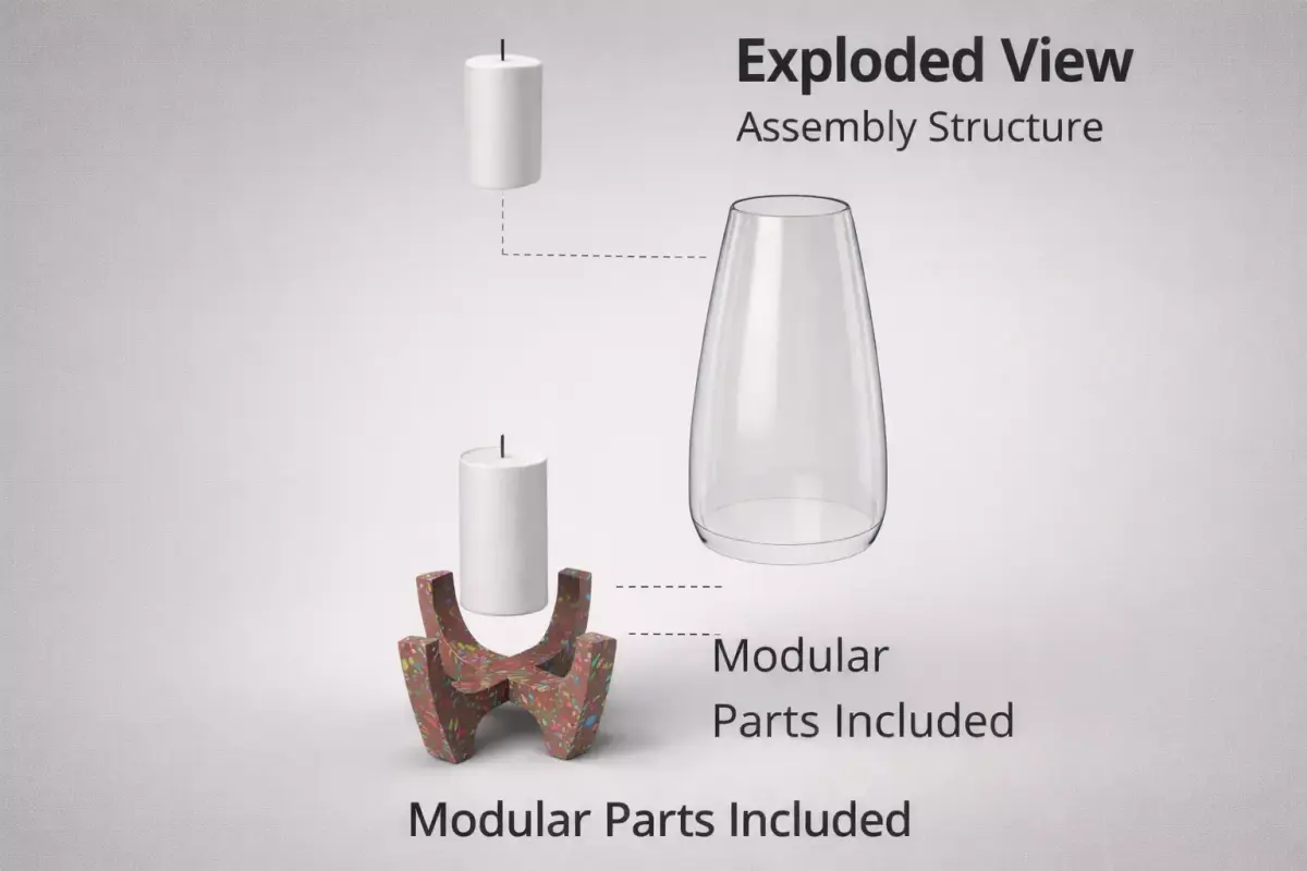 The design combines a terrazzo-style outer structure with a realistic glass cover and candle element, creating a stylish and minimal aesthetic suitable for modern interiors.Features:Clean topologyHigh-quality terrazzo textureRealistic glass materialReady for close-up rendersSuitable for interior scenes and product visualizationOrganized and named objects