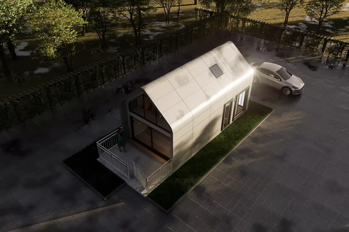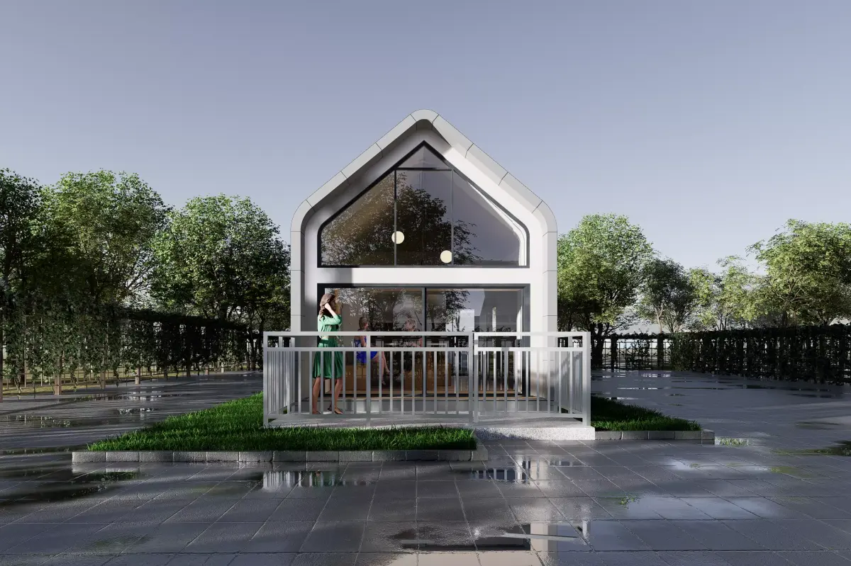 This model is perfect for architectural visualization, pre-fab house showcases, game environments, and VR experiences. The unique curved roof design and full interior detailing make it a versatile asset.