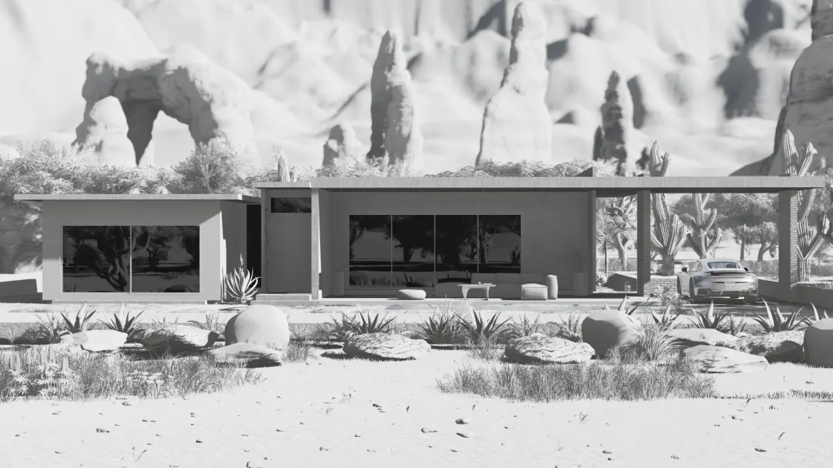 - There is no furniture in the model. Environmental elements were added in Lumion(trees, rocks etc.).