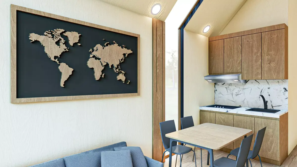 Suitable for modern cabin, glamping, or sustainable living concepts