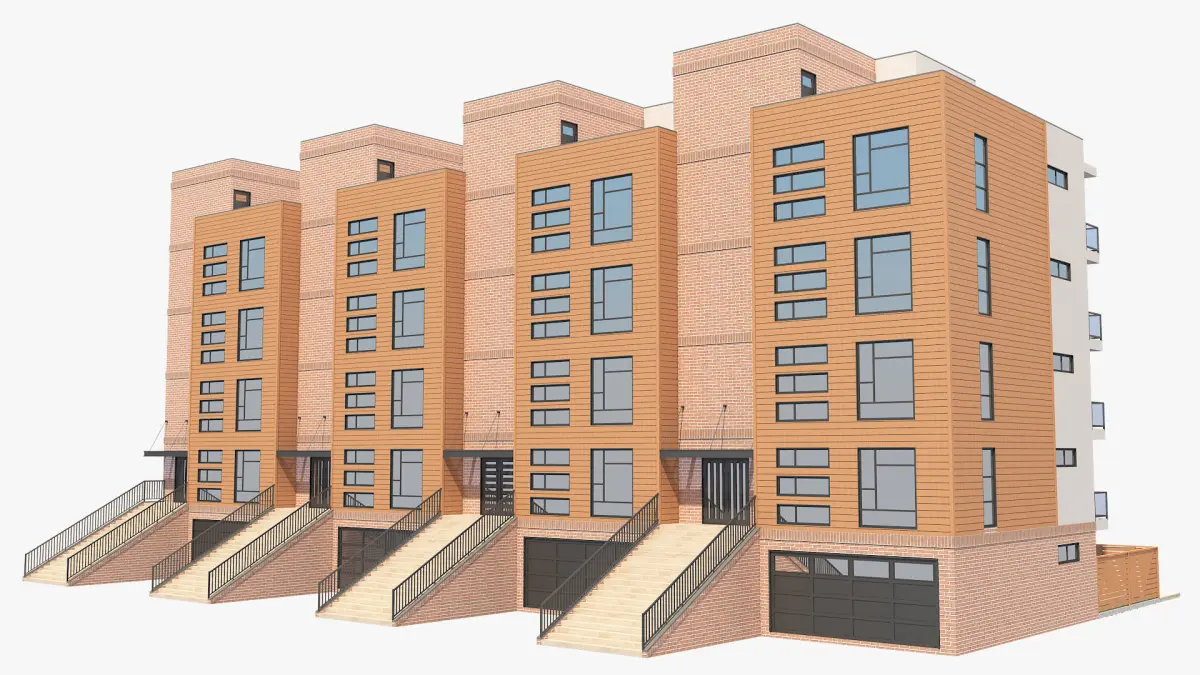 GEOMETRY AND OBJECTS INFORMATION:-Realistic 3D model of a Modern Townhouse Building 1.Real-world scale in feet/inch.Same layer objects attached for easy selection and objects are logically named.All objects in one group.No detail interior wall only basic out wall.