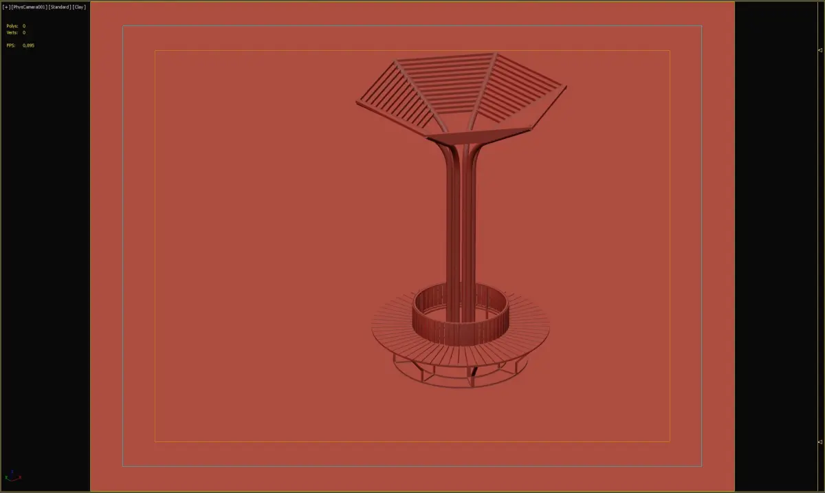 This tree-inspired seating structure features a circular bench and a unique wooden canopy, offering both style and shade for public spaces or parks. A perfect combination of functionality and contemporary design.