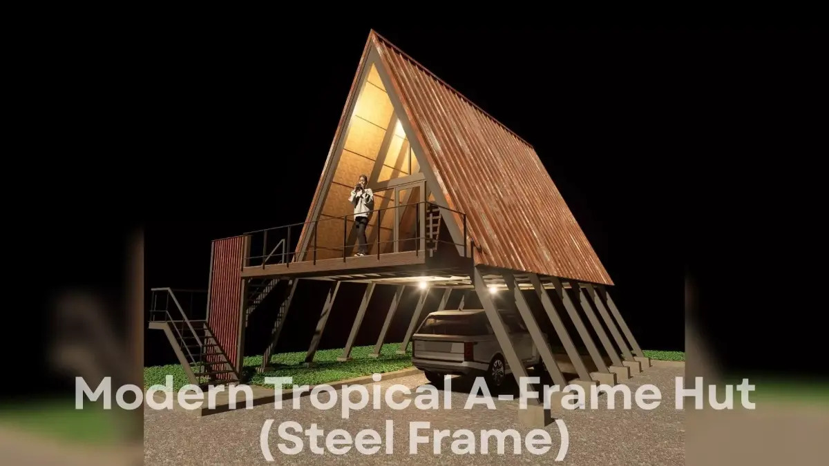 Modern Tropical A-Frame Hut (Steel Frame | Rust Metal Sheet Cladding)