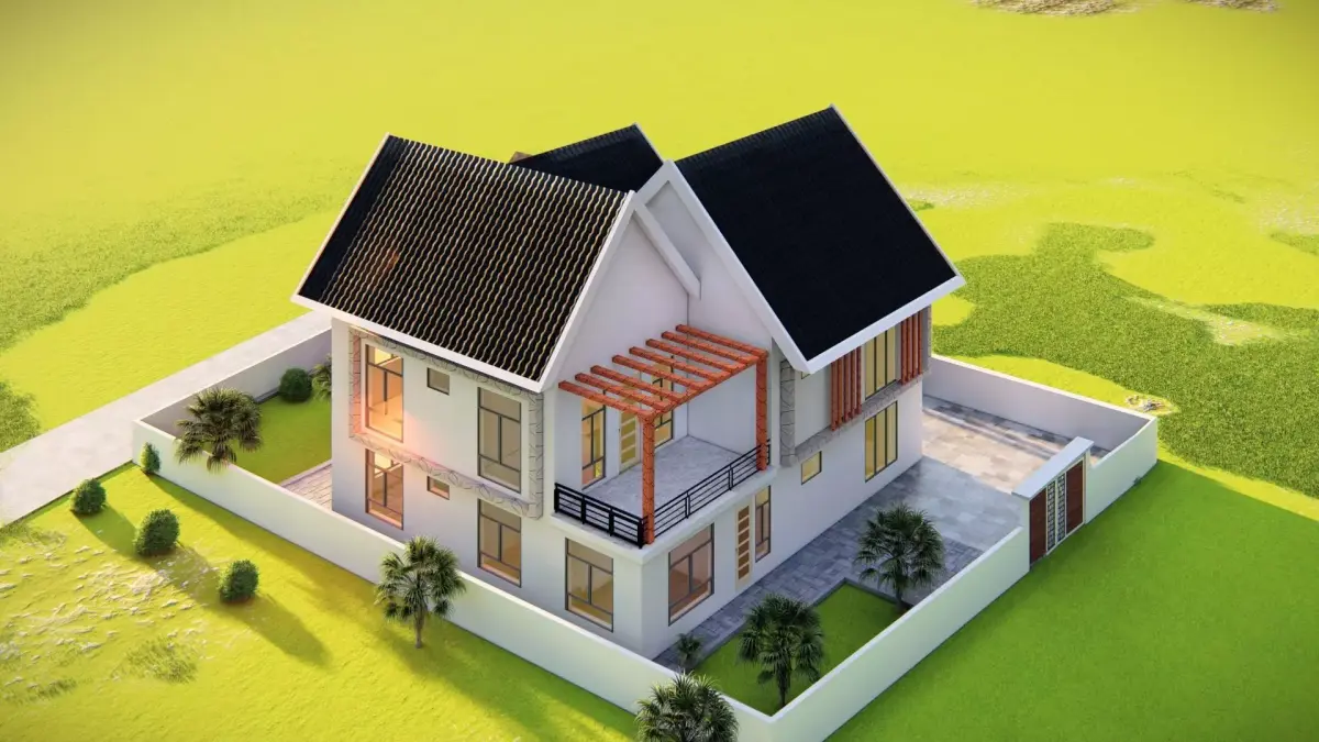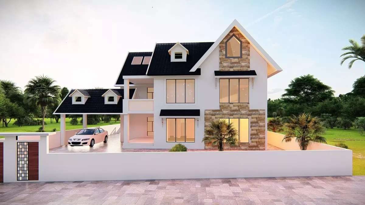 This high-quality Modern Two-Story American House 3D model is designed for professional visualization, architectural projects, and realistic rendering. The house exterior showcases a contemporary blend of clean lines, sharp roof angles, and a stylish black-and-white facade, giving it a modern yet timeless look.