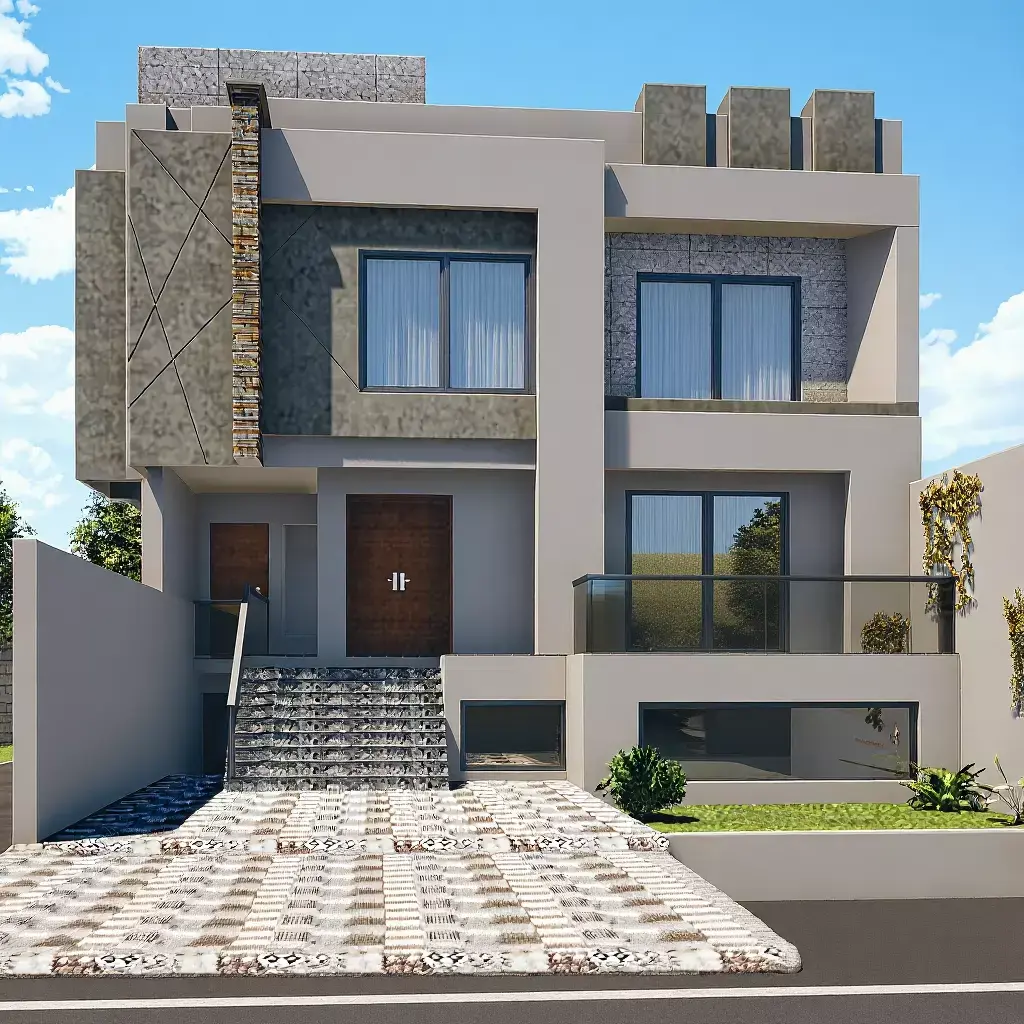The design features a clean modern elevation with well balanced volumes and functional planning. The layout includes clearly organized living and private areas with efficient circulation across both floors, making it practical for real world residential needs. The project is presented with two exterior design views, allowing buyers to explore alternative visual treatments of the same architectural concept.