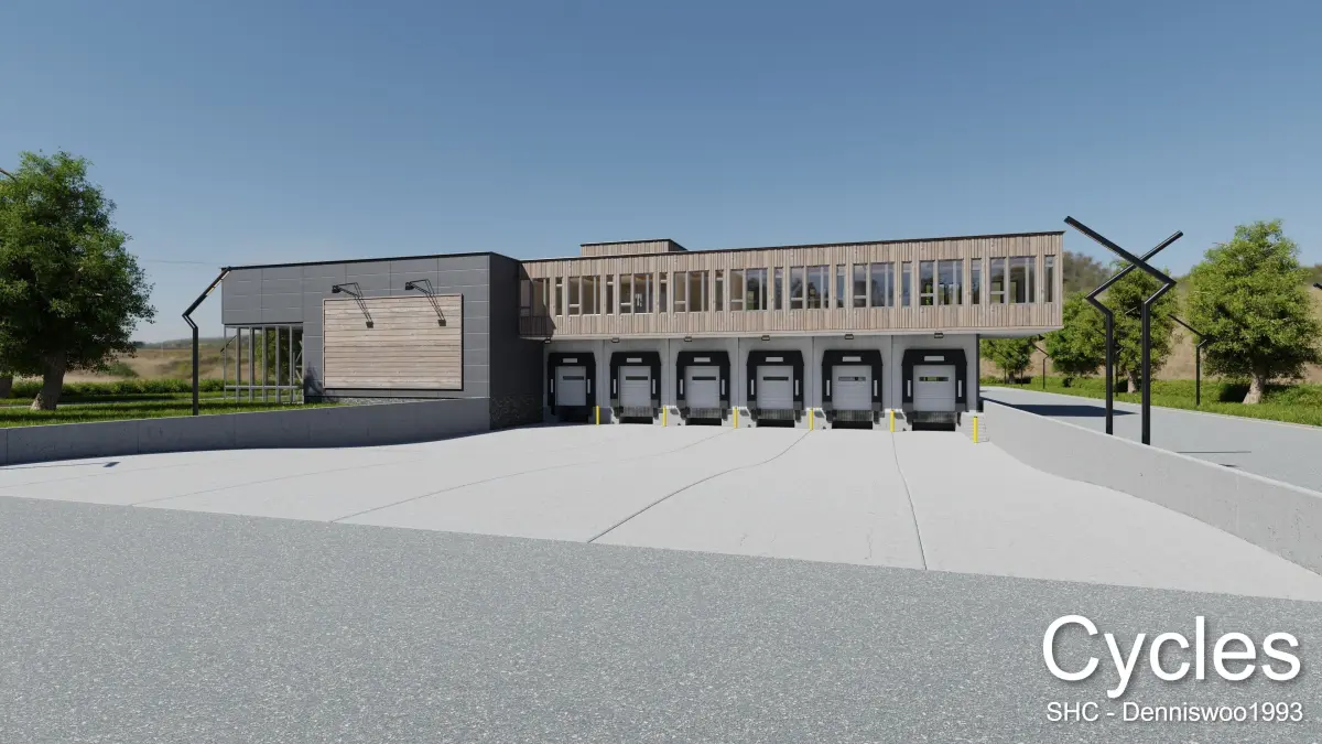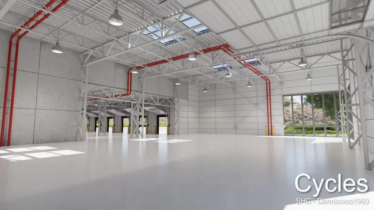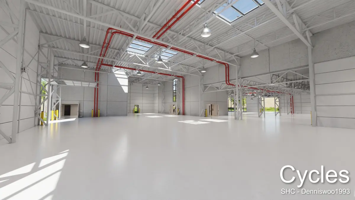 This is a modern industrial warehouse building with an unfurnished interior for Blender Eevee and cycles. Everything in the scene is originally designed and modeled.
