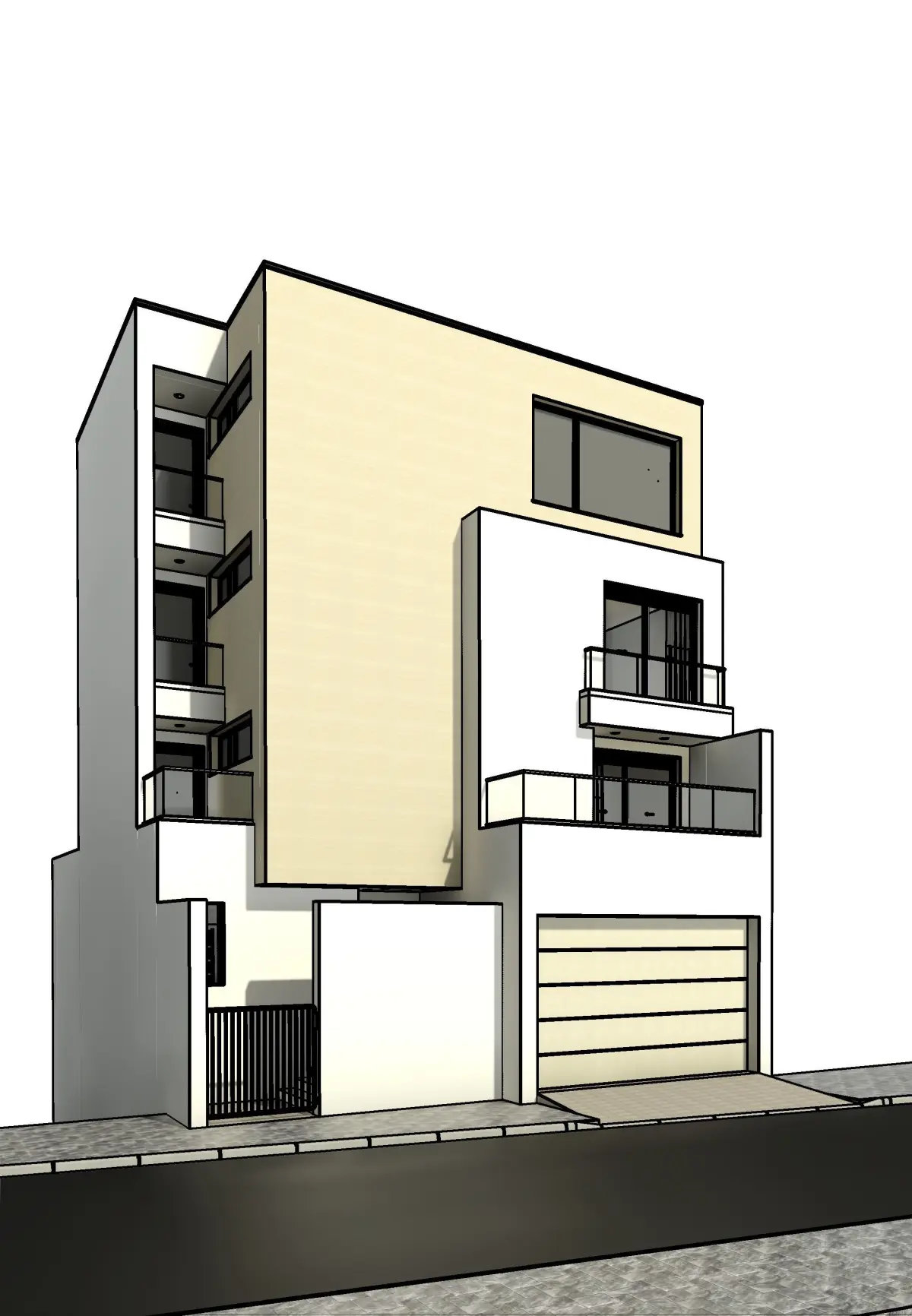 Four storey villa, built on tiny parcel of 180m², the model was built and rendered in Autodesk Revit 2021, with fully parameterizable families and components.Revit file and AutoCAD file are included.