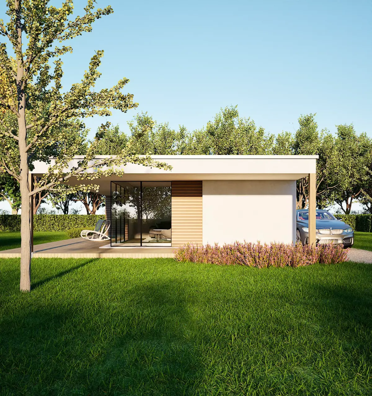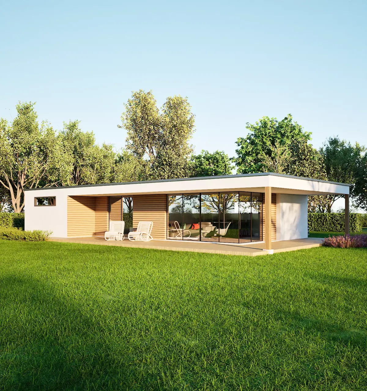 This is a high-quality 3D model of a modern flat-roof villa, designed for architectural visualization, BIM workflows, and realistic rendering.The house features a clean minimalist structure, light façade combined with vertical wooden panels, and large glass walls that bring in natural light. Perfect for modern residential, prefab, or eco-living projects.