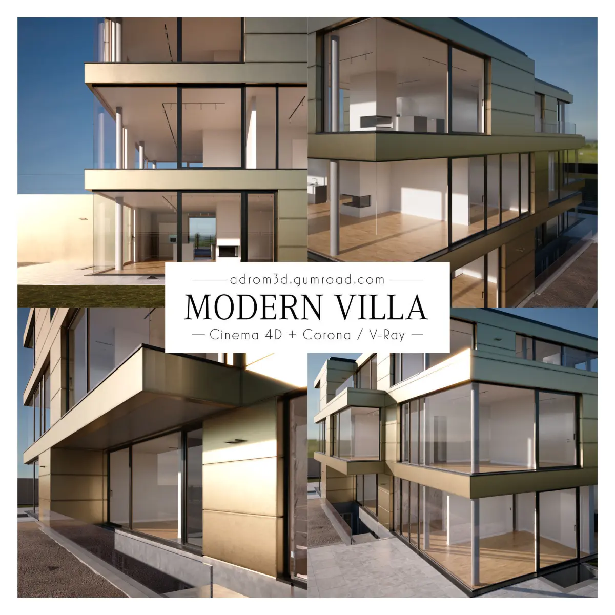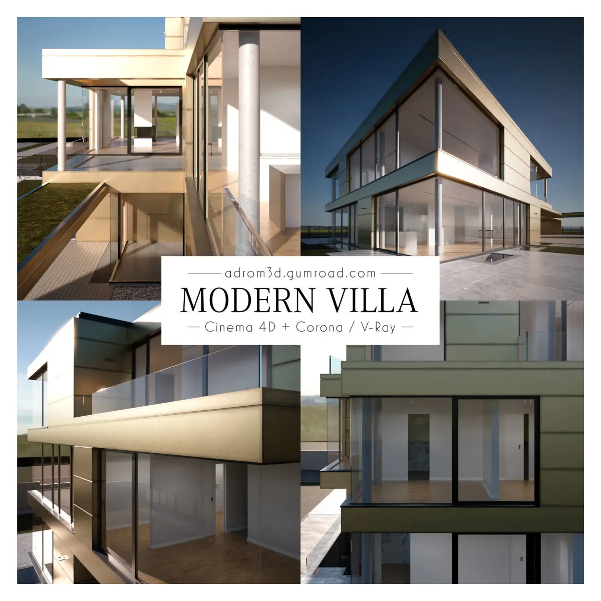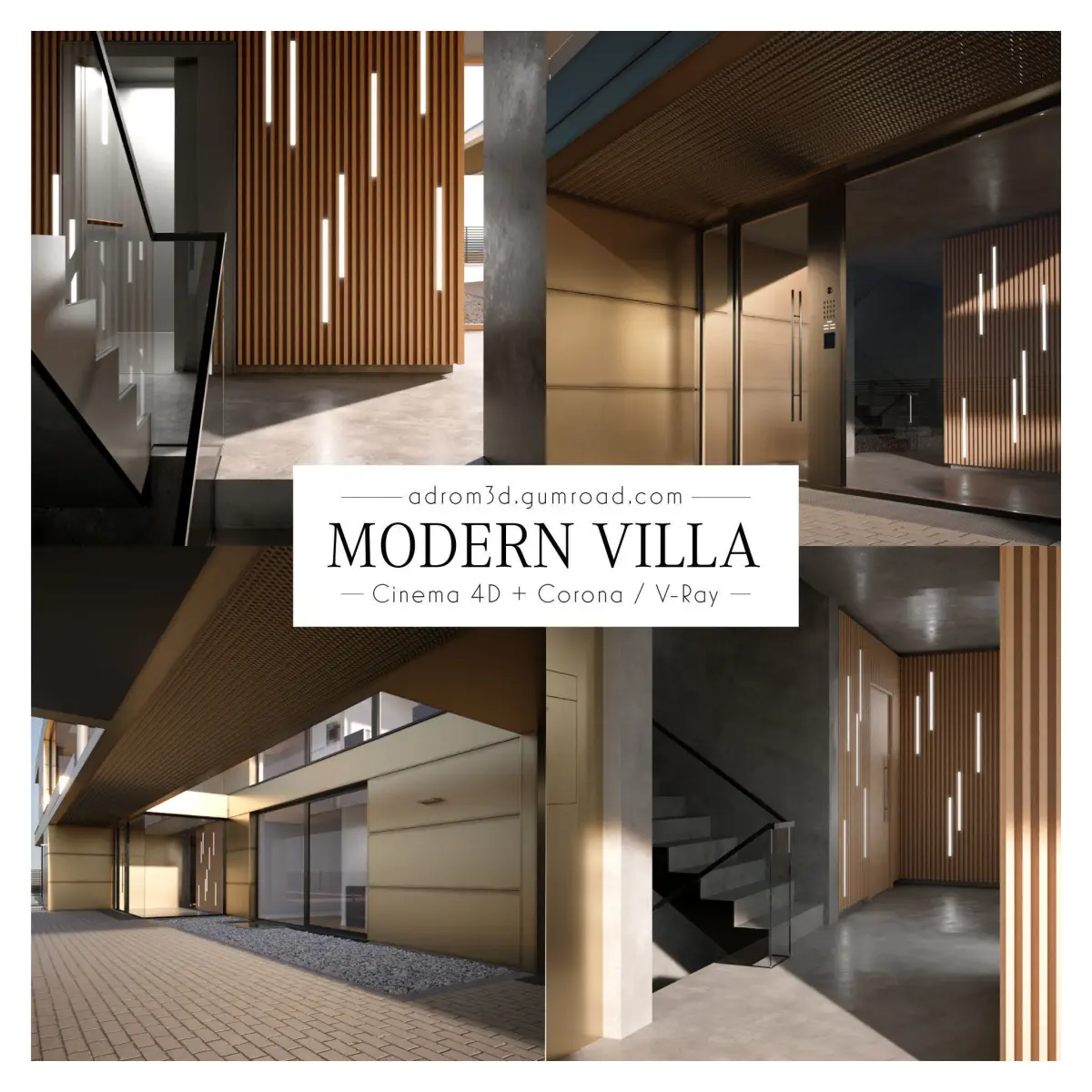 DescriptionThis elaborated modern villa is suitable for both exterior and interior shots thanks to detailed elements like doors, ceiling lights/spots, windows, kitchen, fireplaces and stairs.