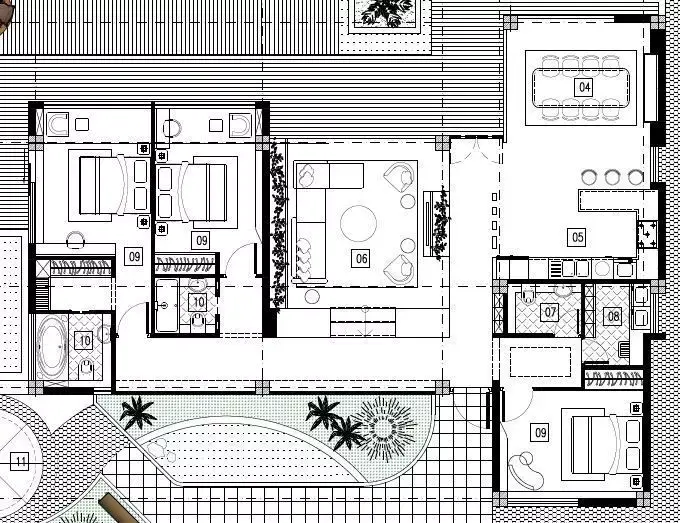 Why Choose This Plan:This villa offers a rare combination of aesthetic design, functional space planning, and resort-style outdoor living. It’s the perfect foundation for upscale residential projects or visualization portfolios.