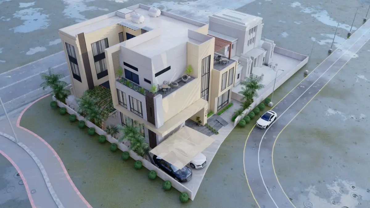 This is a professionally designed 3D architectural model of a modern residential villa, ideal for visualization, presentations, and real estate development.