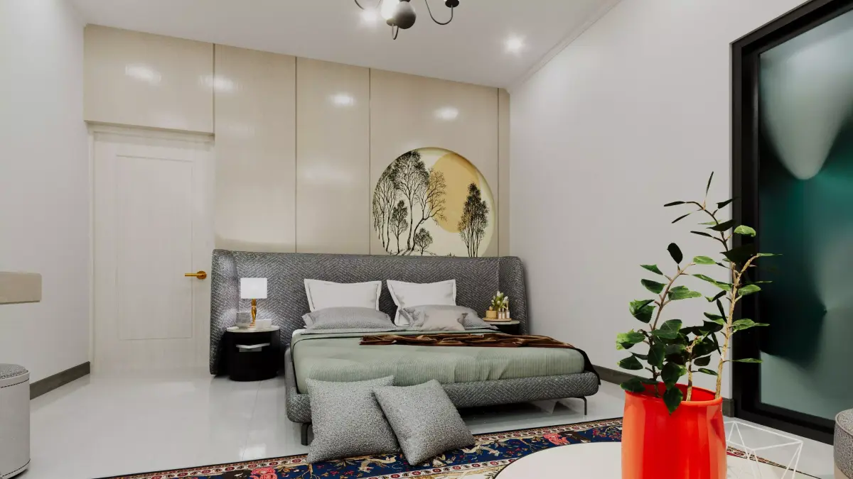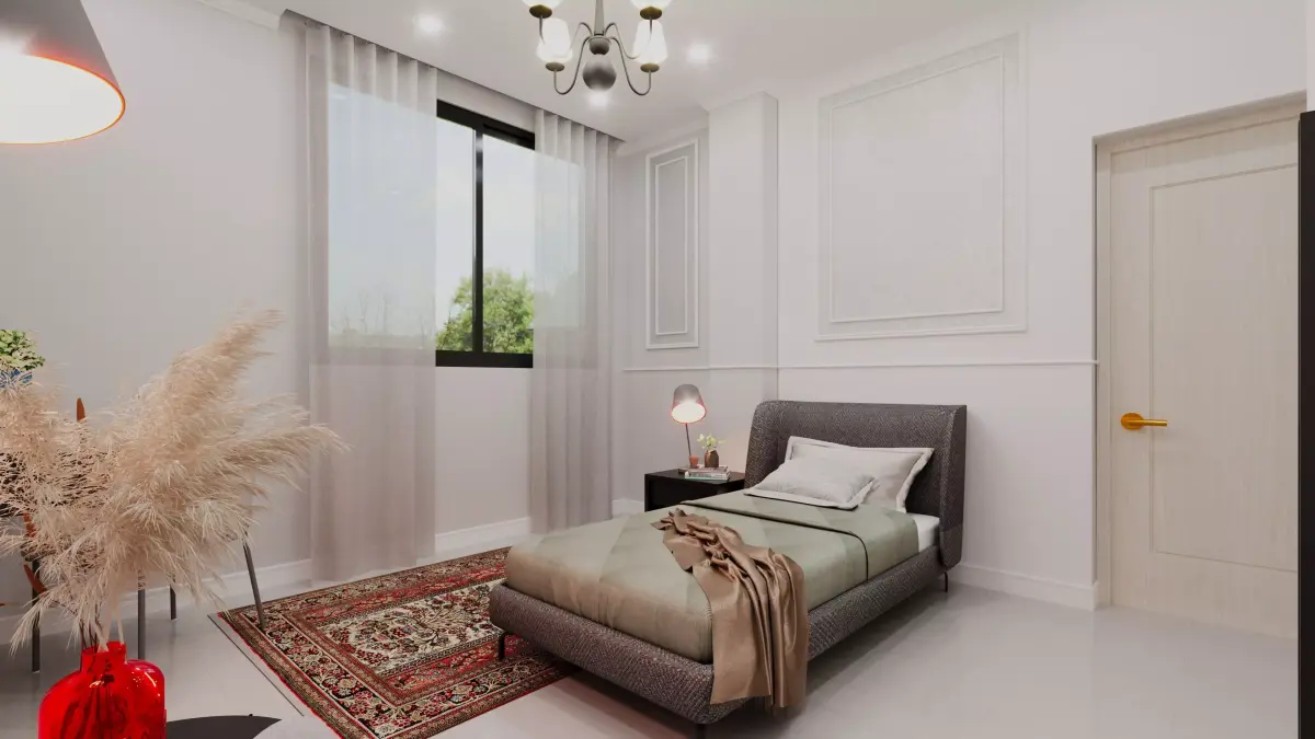 Full interior modeling with furniture and lighting