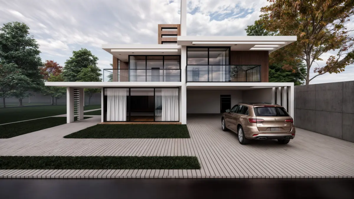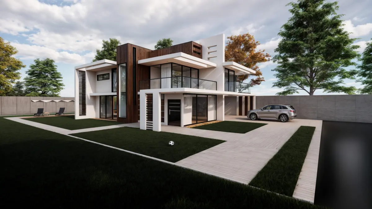 The original design was done in Sketchup. For your convenience, it was taken from the export file. The renderings are in Inscape.The design included several bedrooms with good views and lighting, all of which are on the first floor. On the ground floor there is a large living room and kitchen. The floor is parquet wood. The walls are exposed concrete.The first 8 images are with enescape. The rest of the images are with Lumion.