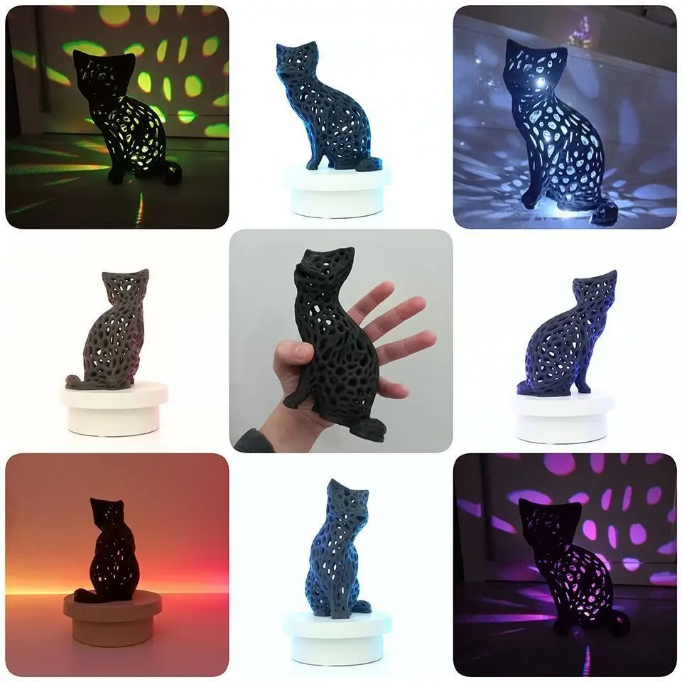 Modern Vornoi Lamp Cute Cat Statue NO SUPPORT 3D print model