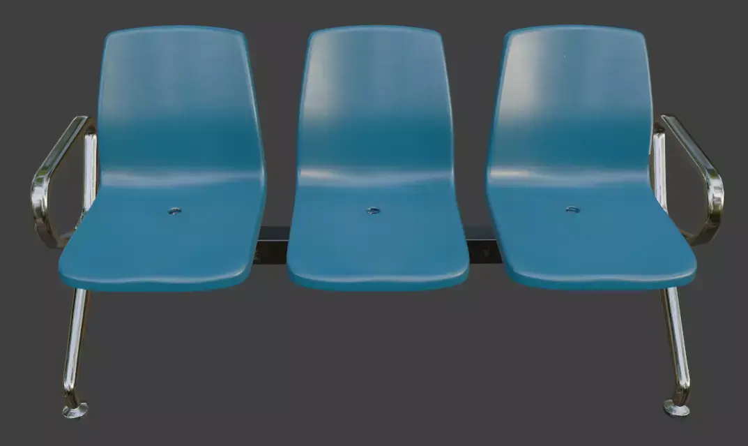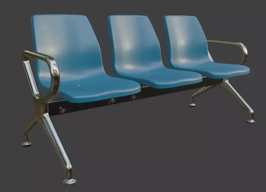 Clean and realistic modern 3-seat waiting bench 3D model with white plastic seats and polished chrome metal legs. Perfect for airports, hospitals, train stations, offices, lobbies, and public interior scenes. High-detail design, smooth surfaces, ready for close-up renders and real-time use. Great for archviz, games, VR, and animations. Compatible with Blender, 3ds Max, Maya, Cinema 4D, Unreal Engine, Unity, and more.