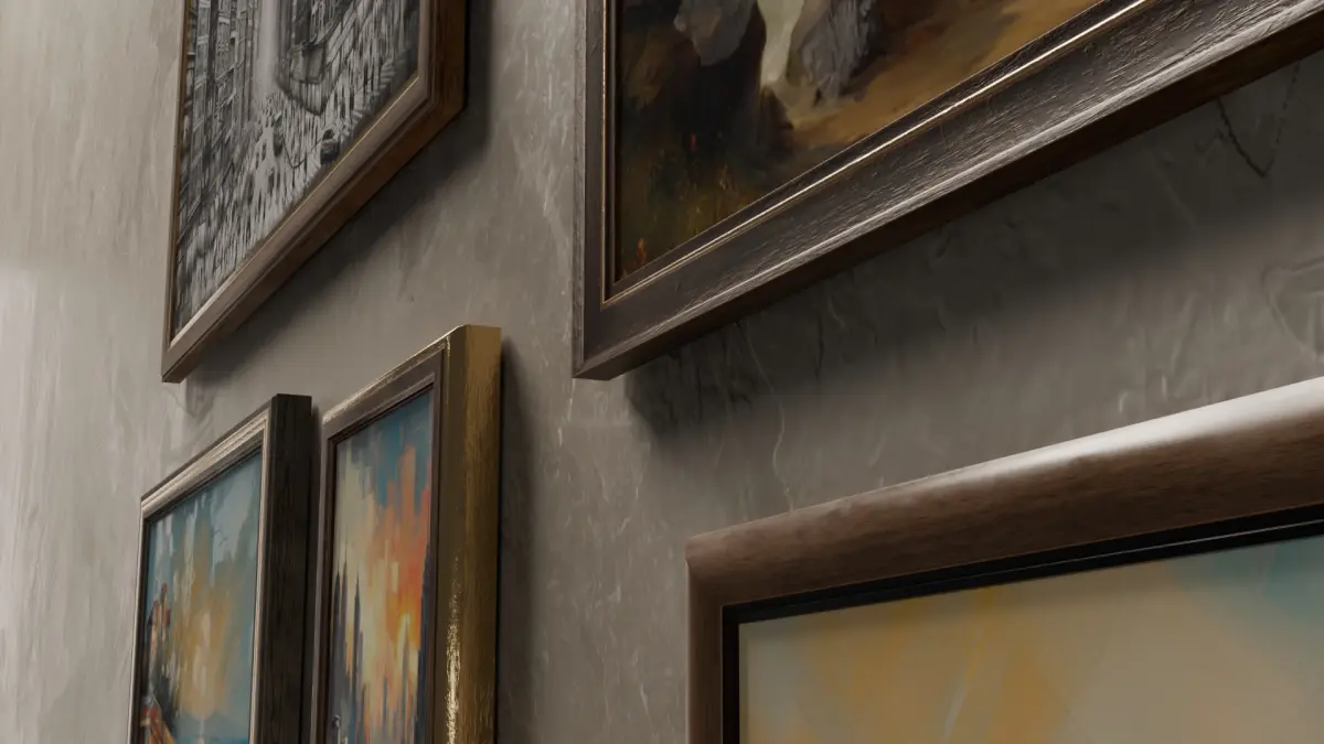This set includes 10 3D frames in various sizes, large and small, perfect for enhancing your design projects and video games. Each frame features unique AI-generated paintings, ranging from serene landscapes to eerie horror portraits. Ideal for interior settings, virtual galleries, or any project that requires a distinctive artistic touch. Add a striking visual element that captures attention and enriches every scene.
