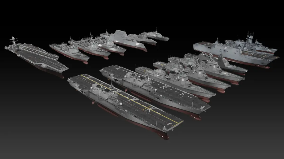 Great Bundle of modern warships of Asia pacific navys. All textured and with PBR materials. The ships of US Navy and JMSDF are UV mixed and Those for RAN are UV mapped.The collection including following classes: