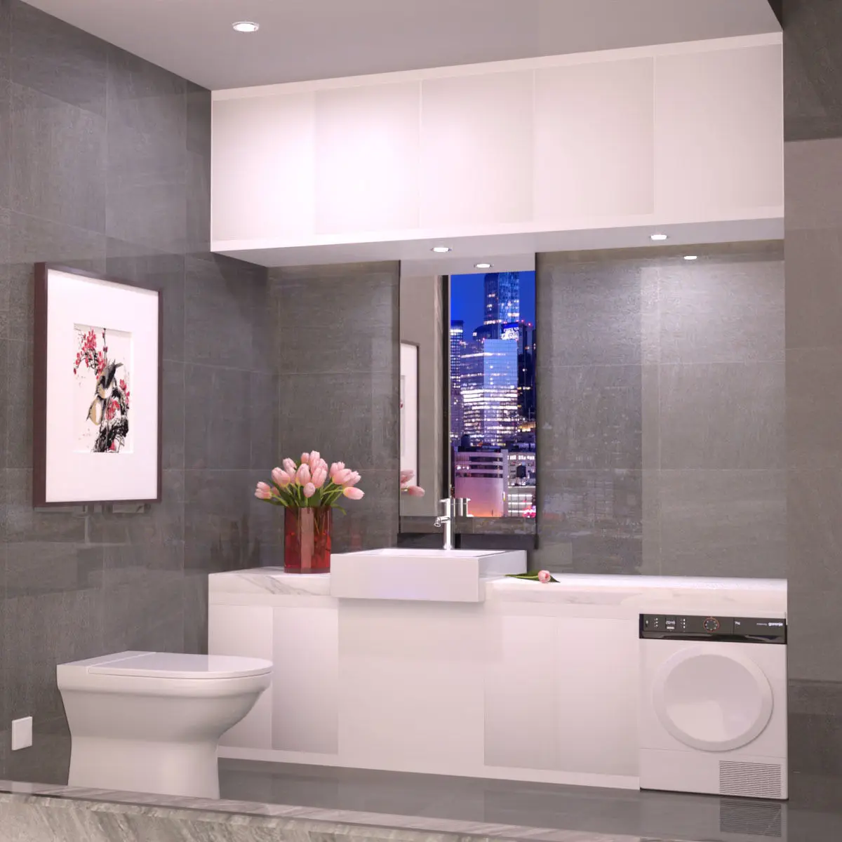 Wanna refresh yourself while enjoying the outside view? or do your laundry on a Sunday afternoon? or just wanna find an oasis during a busy workday? welcome to Modern Washroom, a very delicate interior scene that is cafefully iray-optimized with reference to the visual effect of the real world in every aspect, and one-click solution for both day & night style lets you totally make every minute count!