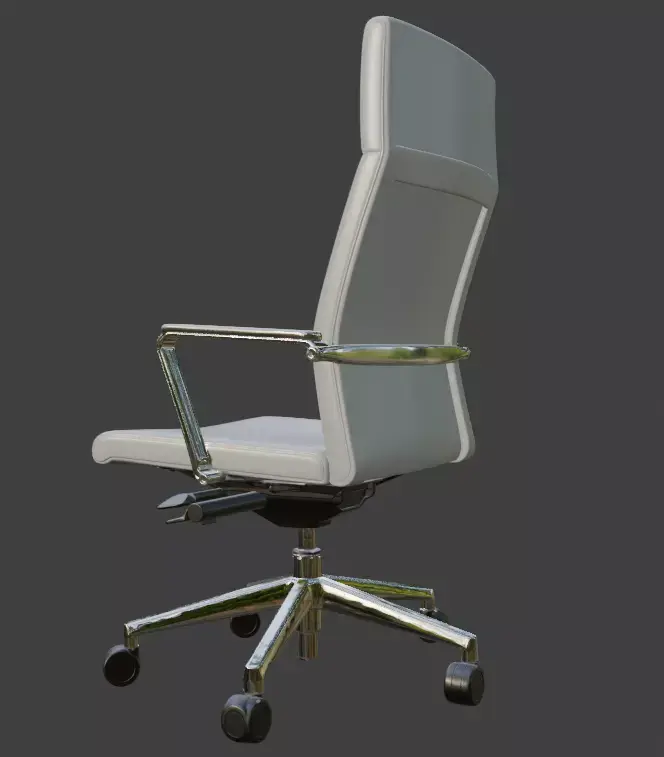 A highly detailed, production-ready 3D model of a premium modern executive office chair with black leather upholstery and polished chrome base. Perfect for architectural visualizations, office interior renders, game environments, VR/AR projects, or high-end product visualizations.This model features clean topology, fully unwrapped UVs, and PBR materials ready for any render engine. The leather material uses realistic textures including high-resolution diffuse, roughness, normal, and specular maps (4K). All parts are properly named and organized in logical groups for easy editing.